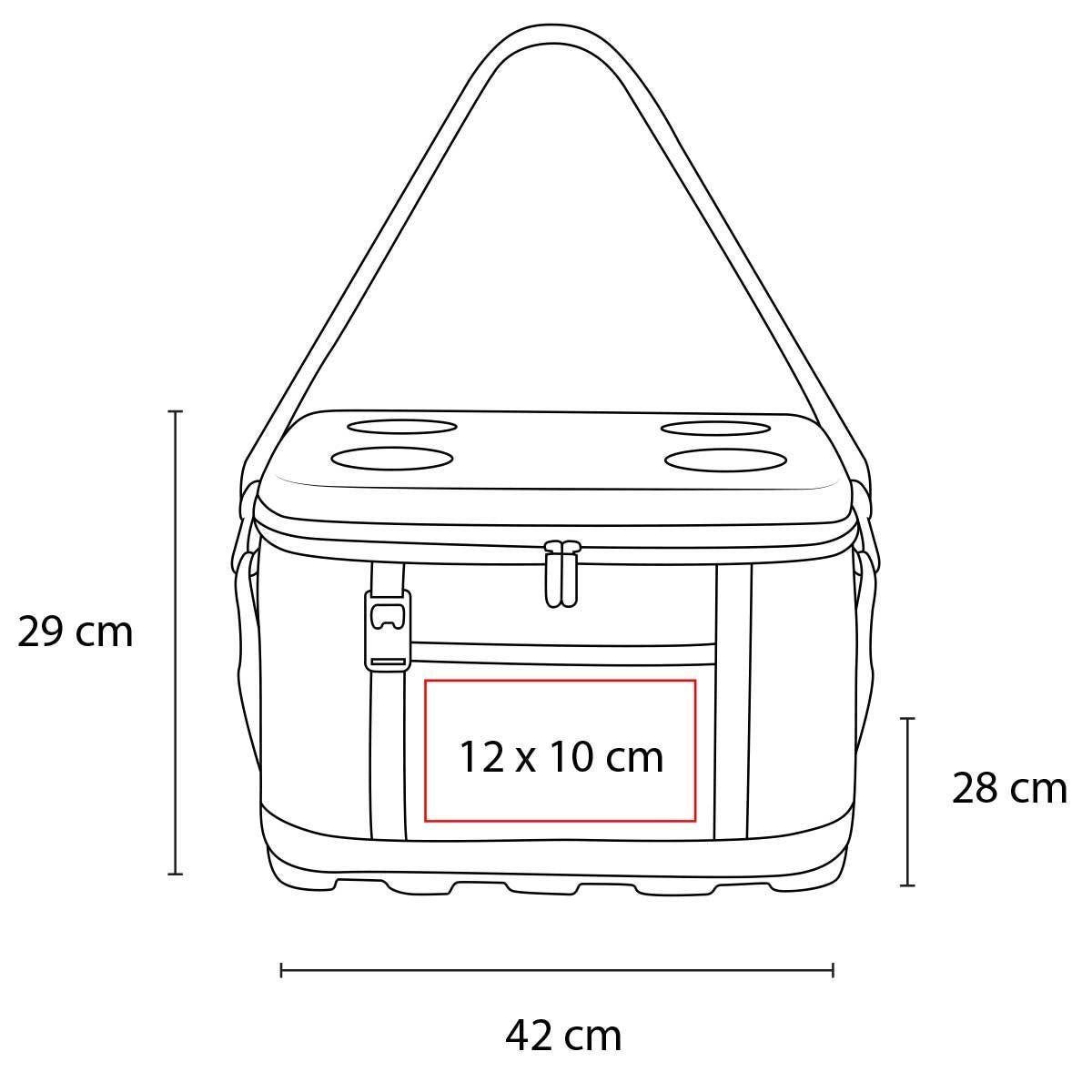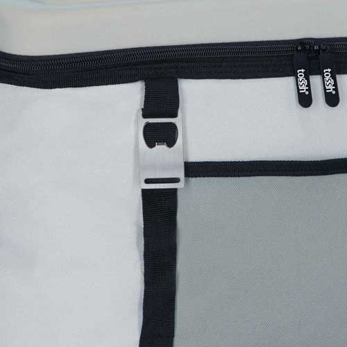 Hielera plegable con interior plastificado impermeable. Base y tapa rígida de EVA, con moldura en la parte superior con función de porta latas. Correa ajustable removible y asas laterales. Bolsillo frontal. Bolsa de malla interior. Incluye destapador metálico. Capacidad para 48 latas.