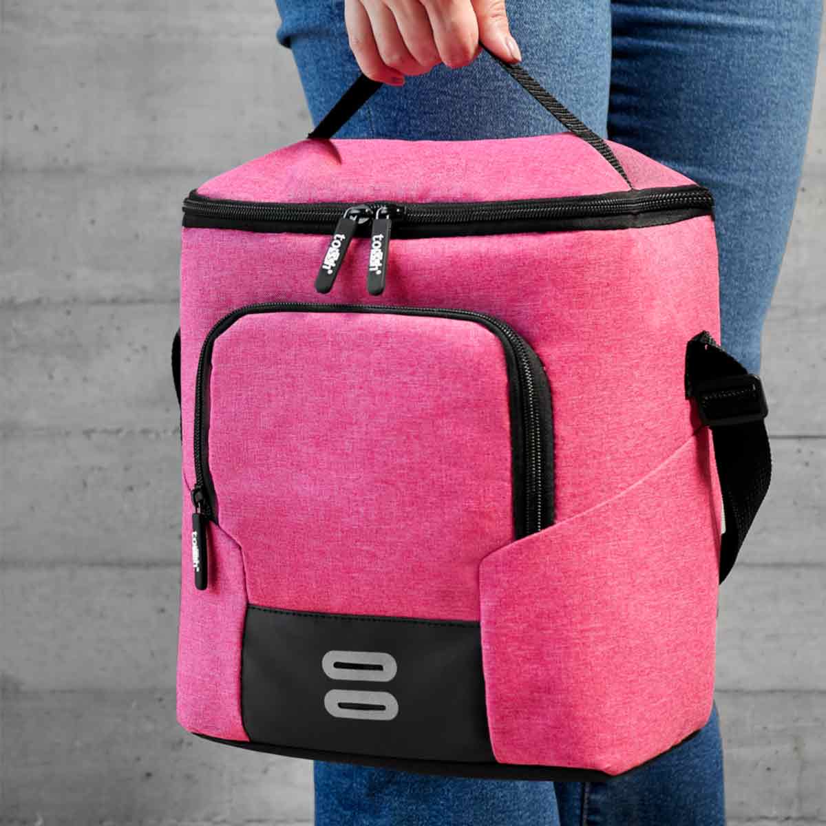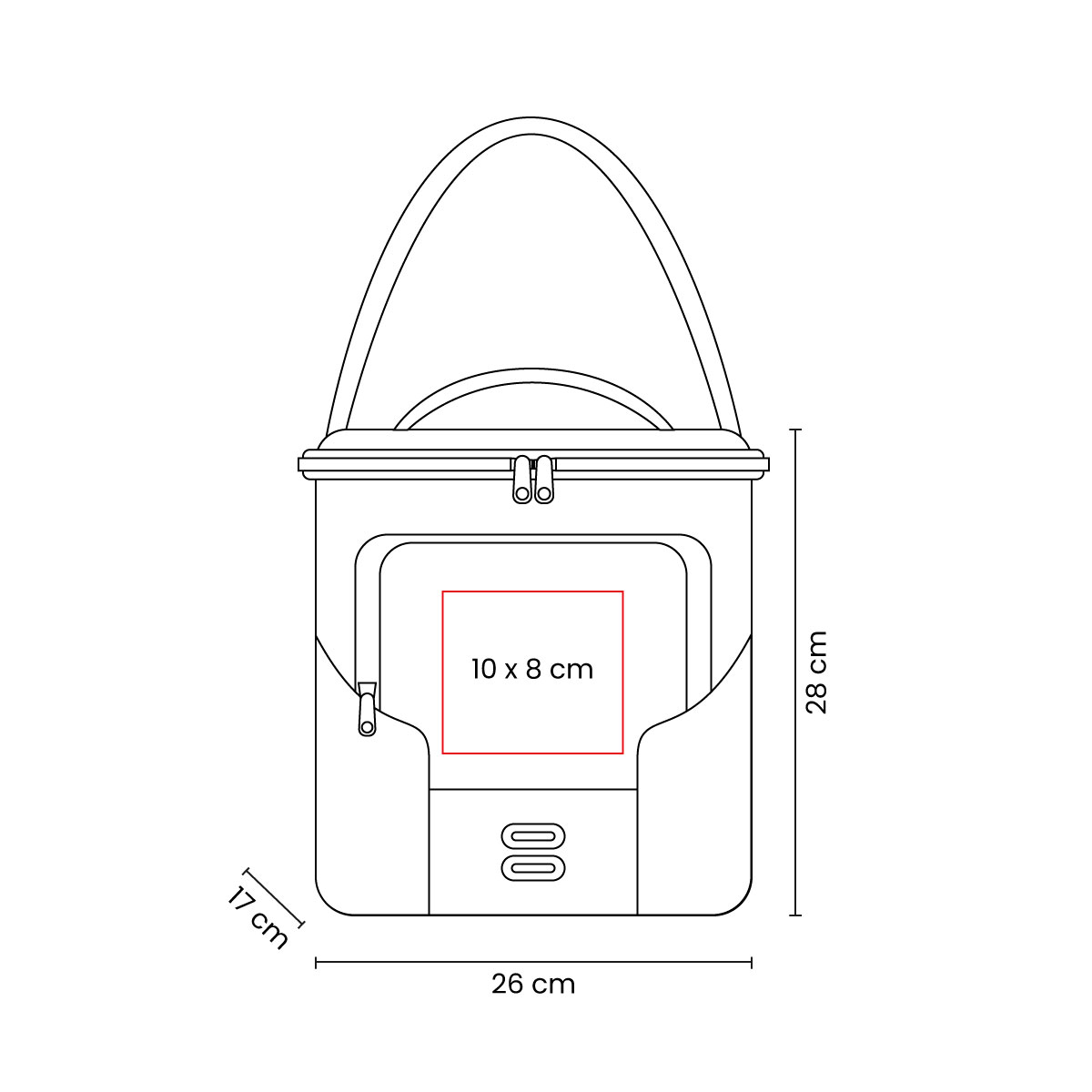 Hielera con interior plastificado impermeable. Bolsa principal y bolsa frontal con cierre. Al frente cuenta con 2 figuras reflejantes. Llévala a todas partes con su asa de transporte superior y correa ajustable para hombro. Su diseño y tamaño es muy cómodo para almacenar tus alimentos y bebidas. Capacidad para 12 latas.