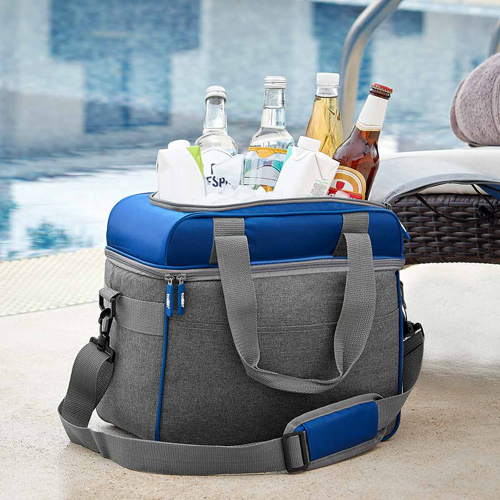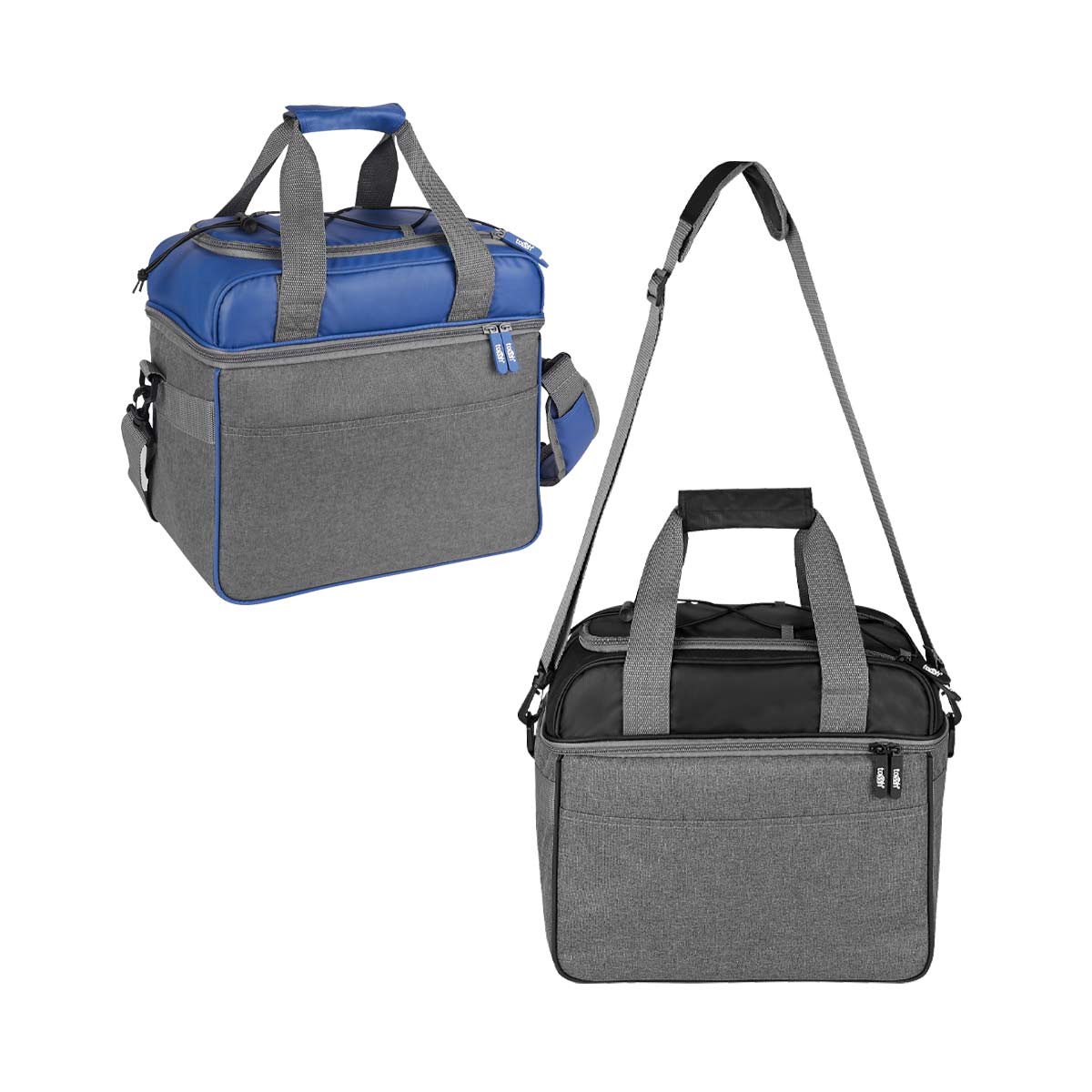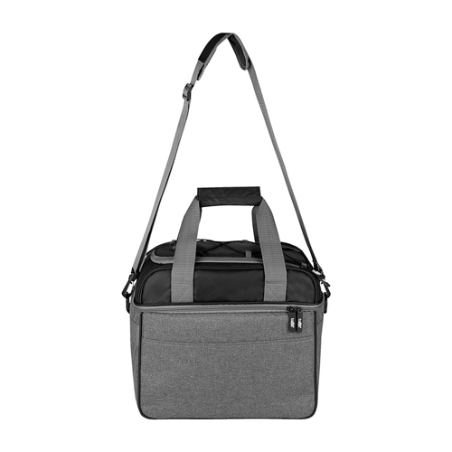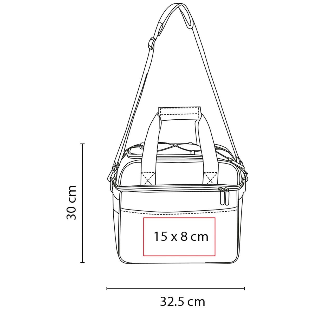 Interior plastificado impermeable. Bolsa principal y bolsa superior con cierre para fácil acceso a interior, bolsa frontal, asas y correa ajustable. Capacidad en parte superior para 4 latas y en parte inferior 10 latas. Este producto por ser últimas piezas puede presentar alguna variación, no se aceptan devoluciones.