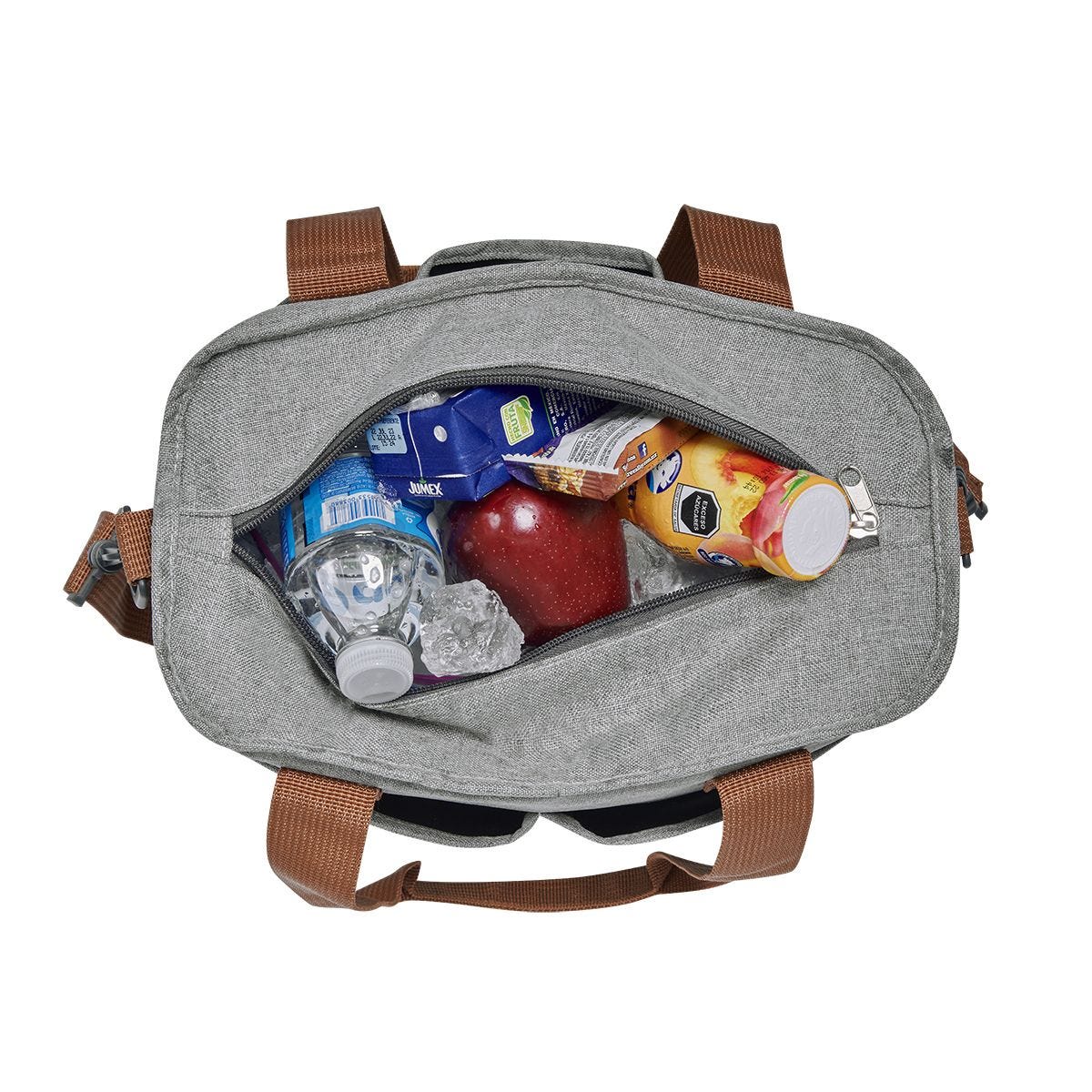 Hielera con interior plastificado impermeable. Bolsillo principal con cierre, 3 bolsillos frontales y 2 bolsillos posteriores. Asa principal ajustable. Cuenta con 2 asas de agarre extra. Capacidad para 10 latas. Este producto por ser últimas piezas puede presentar alguna variación, no se aceptan devoluciones.