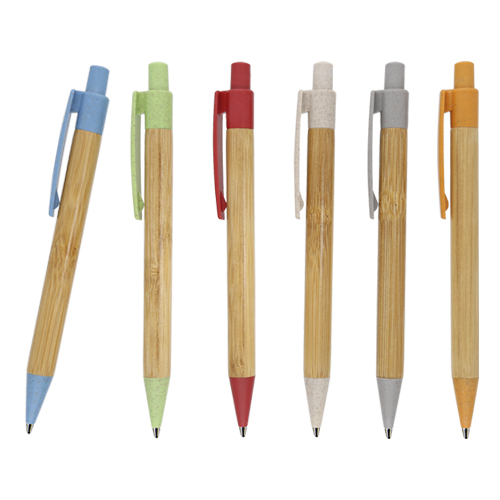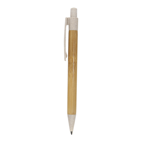 Bolígrafo de bambú con clip y punta de wheat straw (fibra de trigo) con mecanismo de click.