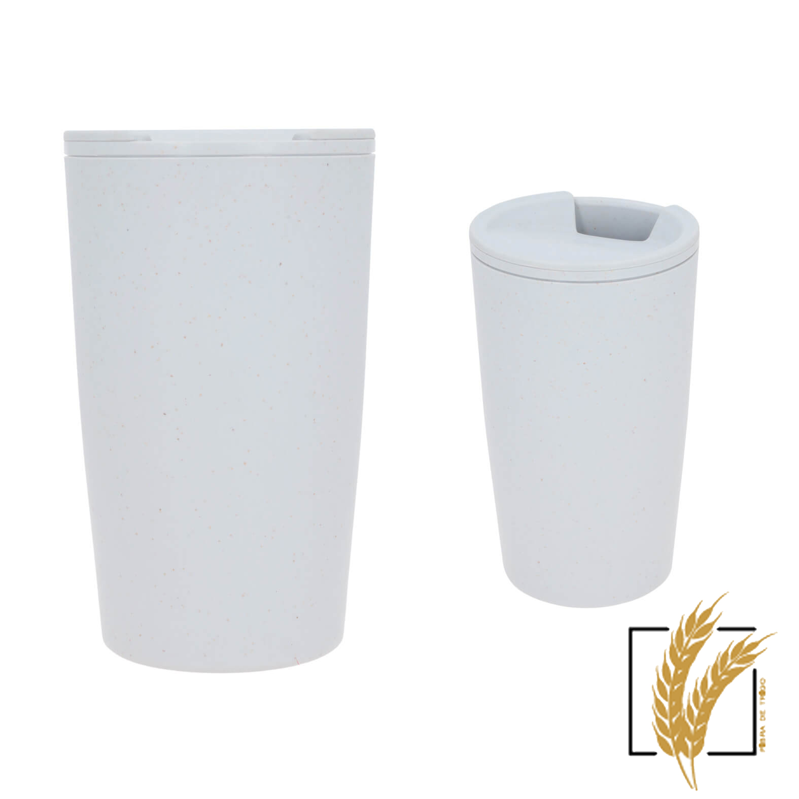 Termo de doble pared de plástico con acabado wheat straw y tapa enroscable.
