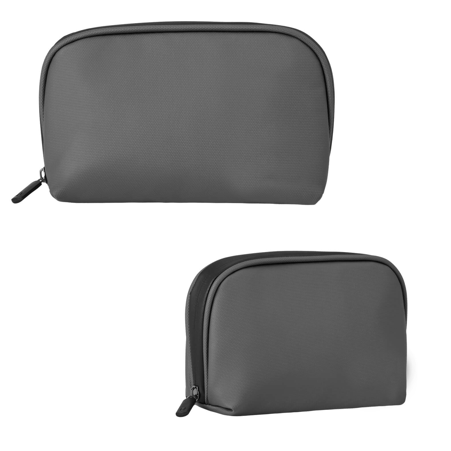 Neceser de viaje con interior forrado, cinco compartimentos y cierre.