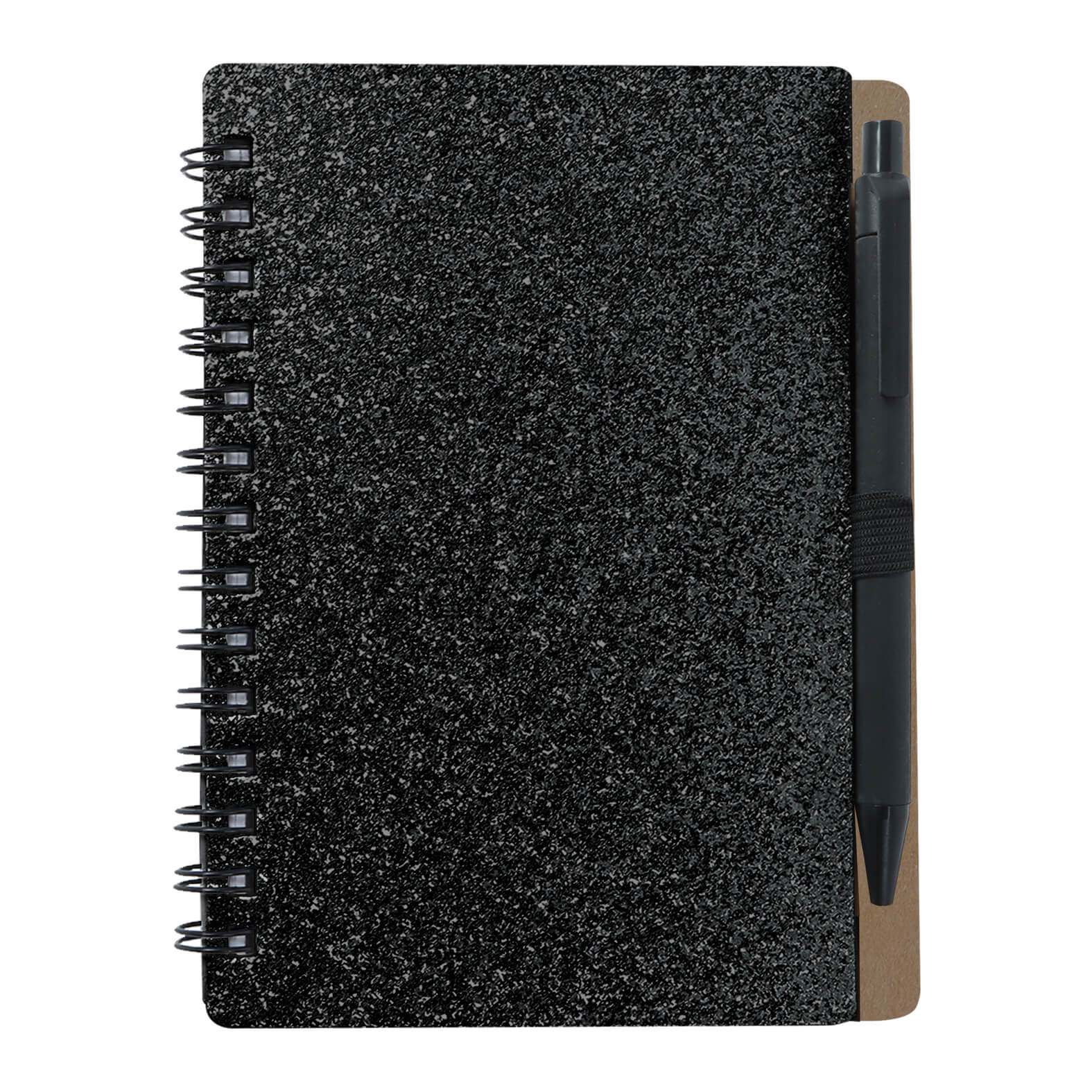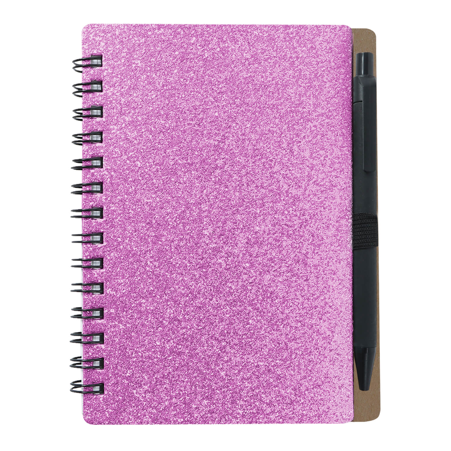 Mini libreta ecológica con espiral, purpurina, bolígrafo y 70 hojas de raya.