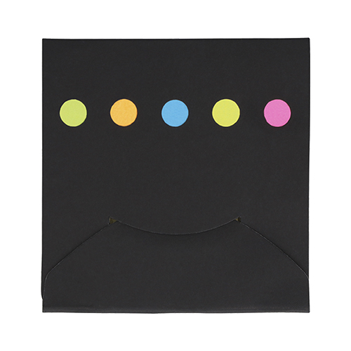 Sobre de cartón con notas y banderas adheribles.