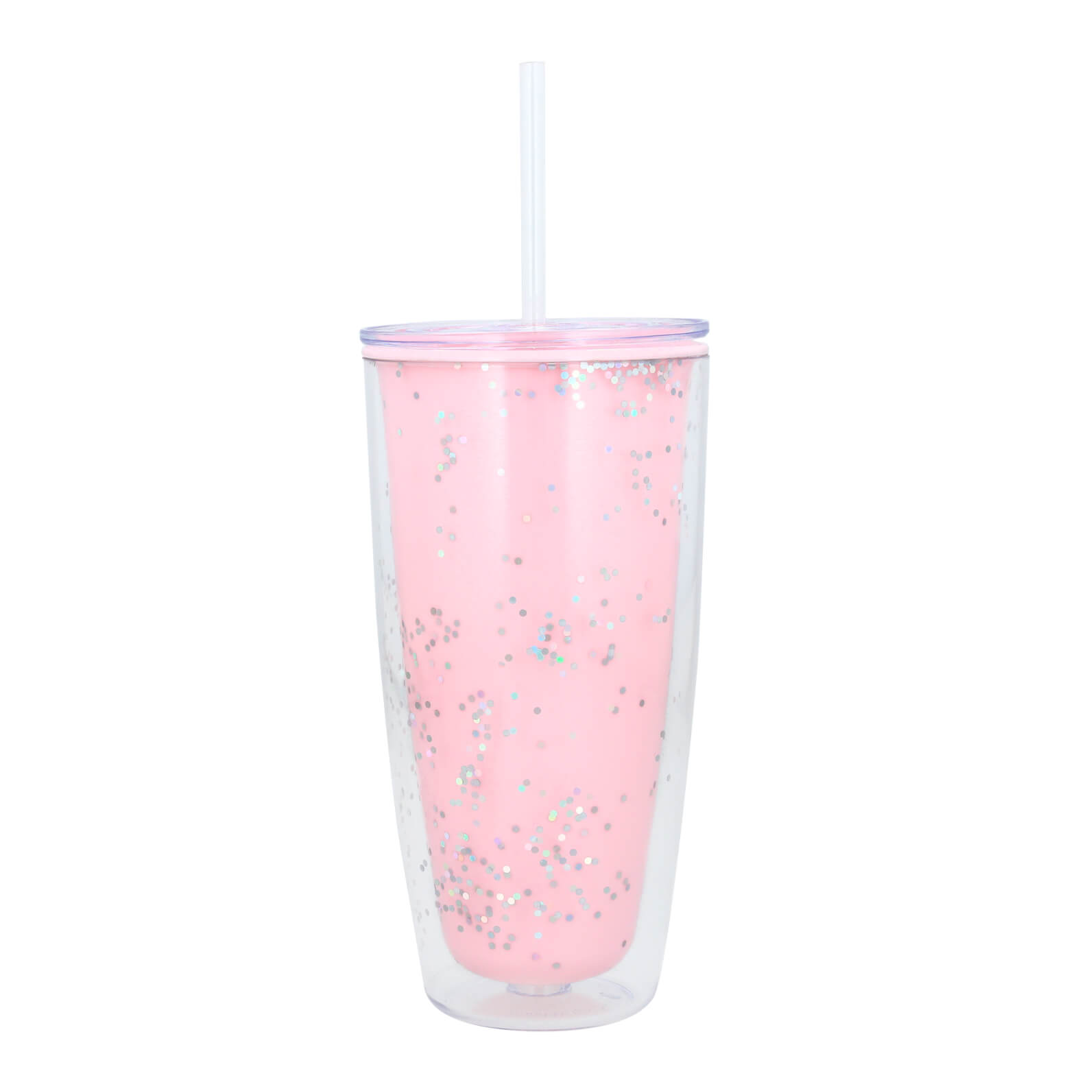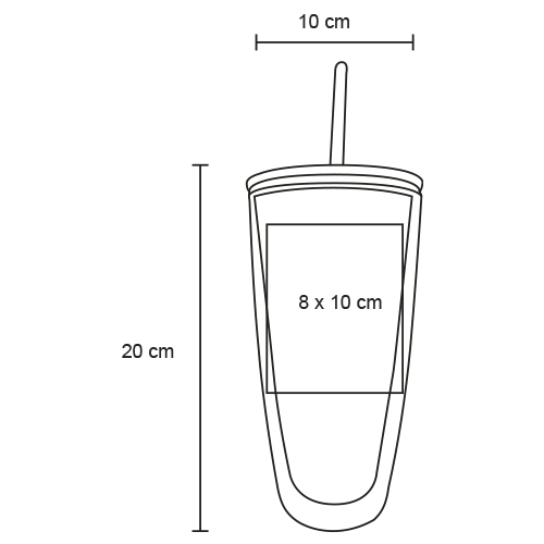 Vaso con doble pared de plástico, tapa enroscable y popote.