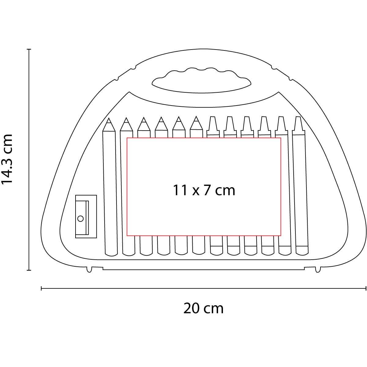 Estuche con 1 sacapuntas, 6 crayones y 6 colores.