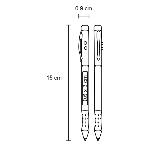 Bolígrafo metálico con luz blanca, señalador láser y tinta negra. (incluye estuche con pilas de repuesto).