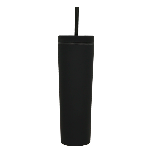 Termo de plástico con doble pared, tapa enroscable y acabado rubber. Incluye popote de plástico.