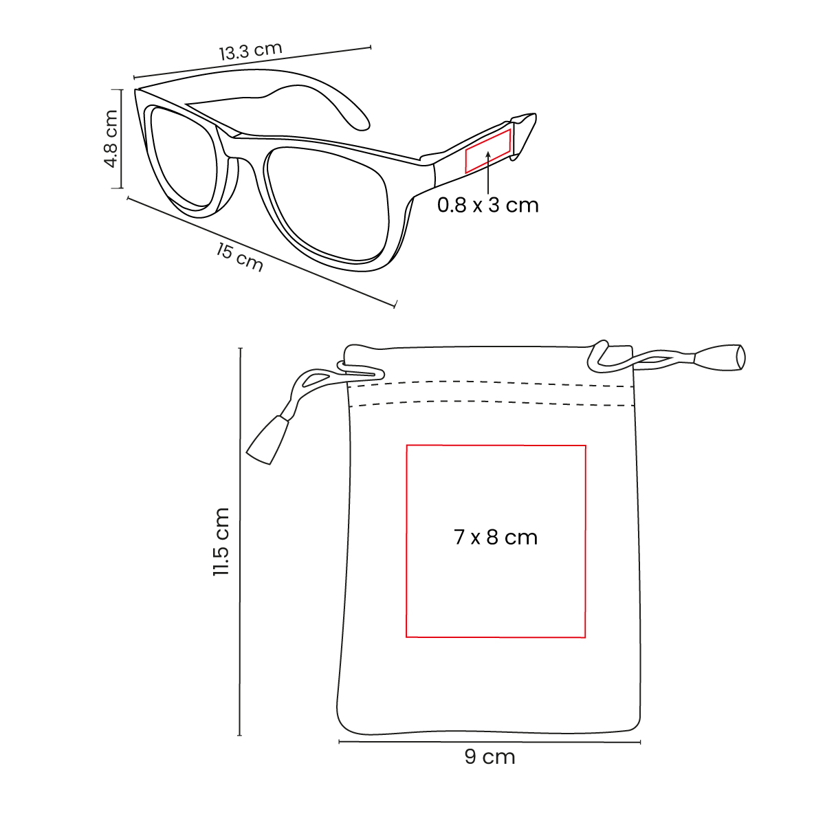 0.8 x 3 cm Lentes / 7 x 8 cm Bolsa