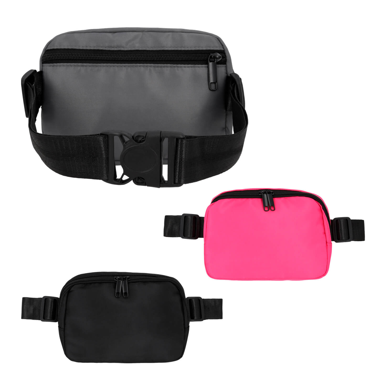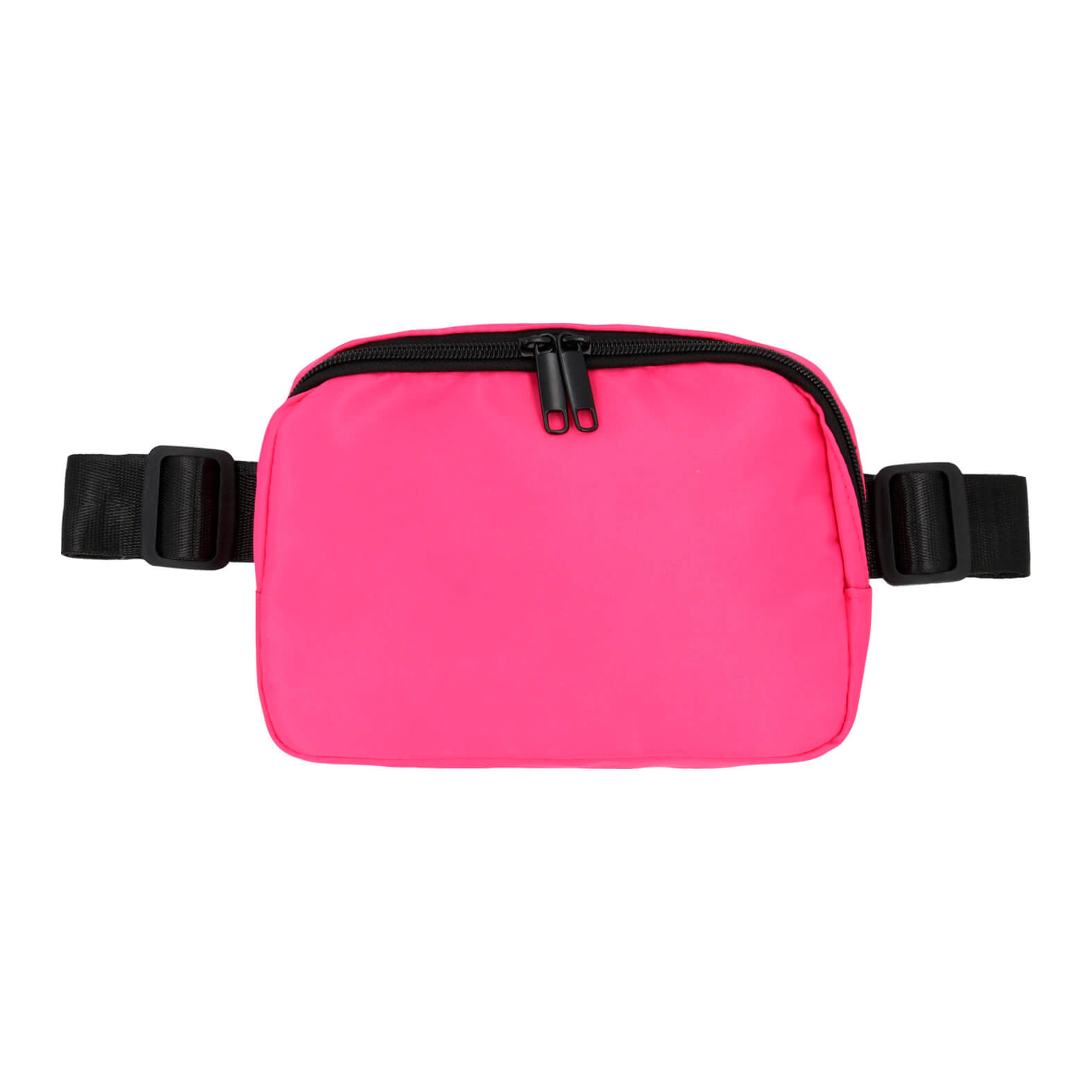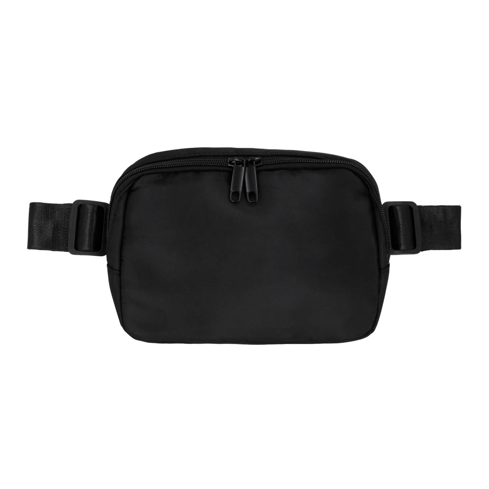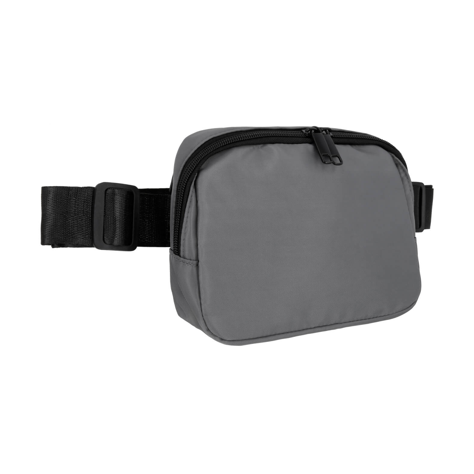 Cangurera de doble cierre con 1 compartimento principal y bolsa interna, 1 compartimento trasero, correa de doble ajuste con broche de seguridad.