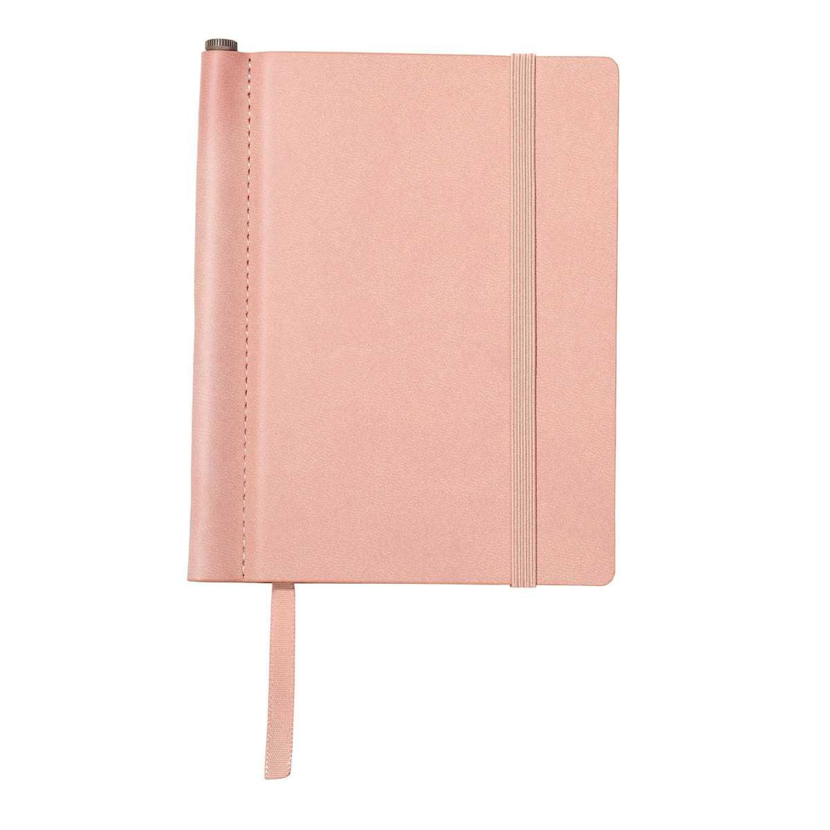Libreta de bolsillo con 70 hojas a rayas. Cubierta de curpiel, cuyo diseño brinda comodidad y elegancia. Incluye un listón separador interno y un elástico externo para mantenerla cerrada. Además, cuenta con un práctico compartimento lateral, que incluye un bolígrafo con tinta negra. Haciendo de este conjunto el aliado perfecto, para llevar contigo con un toque de estilo y organización.
