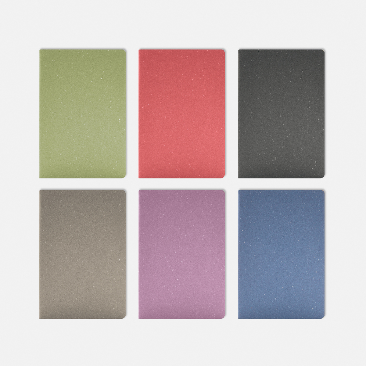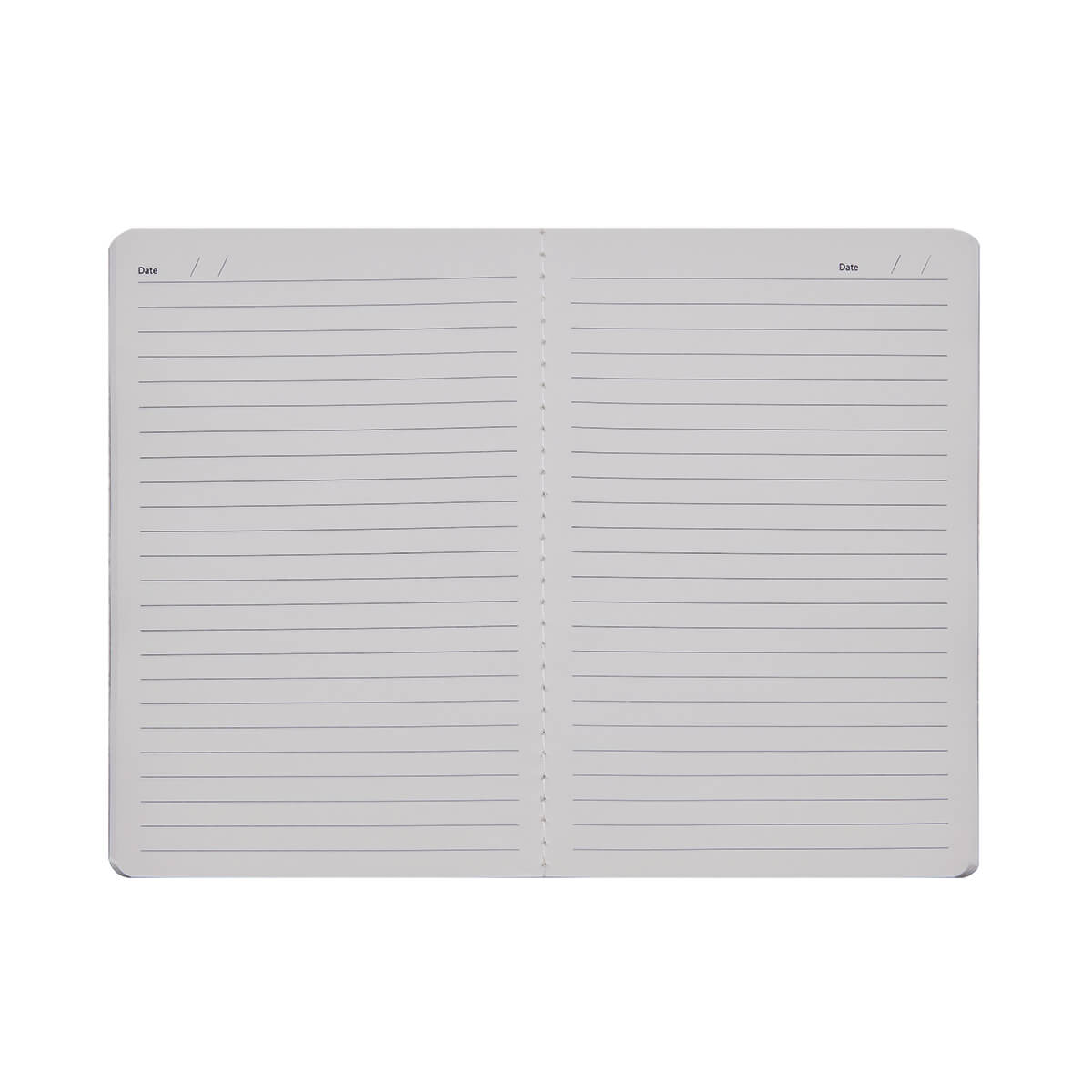 Libreta con 40 hojas de raya. Pasta de cartón de color con borde cocido.