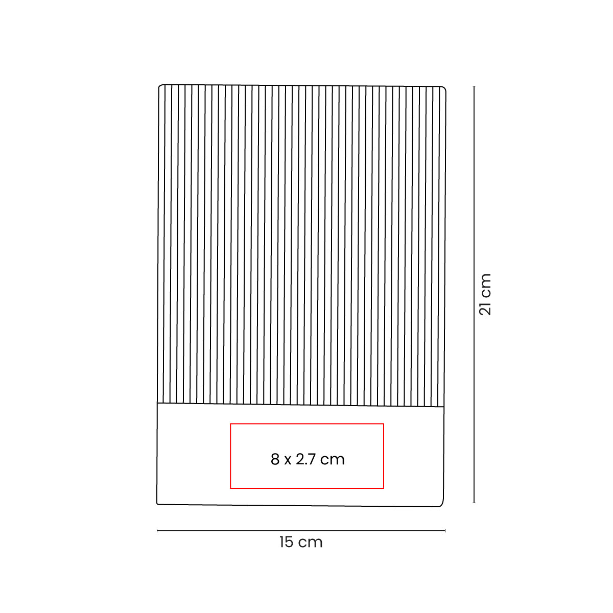 Libreta con 100 hojas a rayas. Pasta que combina dos tipos de textura: una suave con líneas verticales y otra lisa. Los bordes de las hojas son del mismo color que la pasta. Cada página está diseñada con un apartado especial para poner la fecha, permitiéndote organizar tus notas y escritos de manera cronológica.