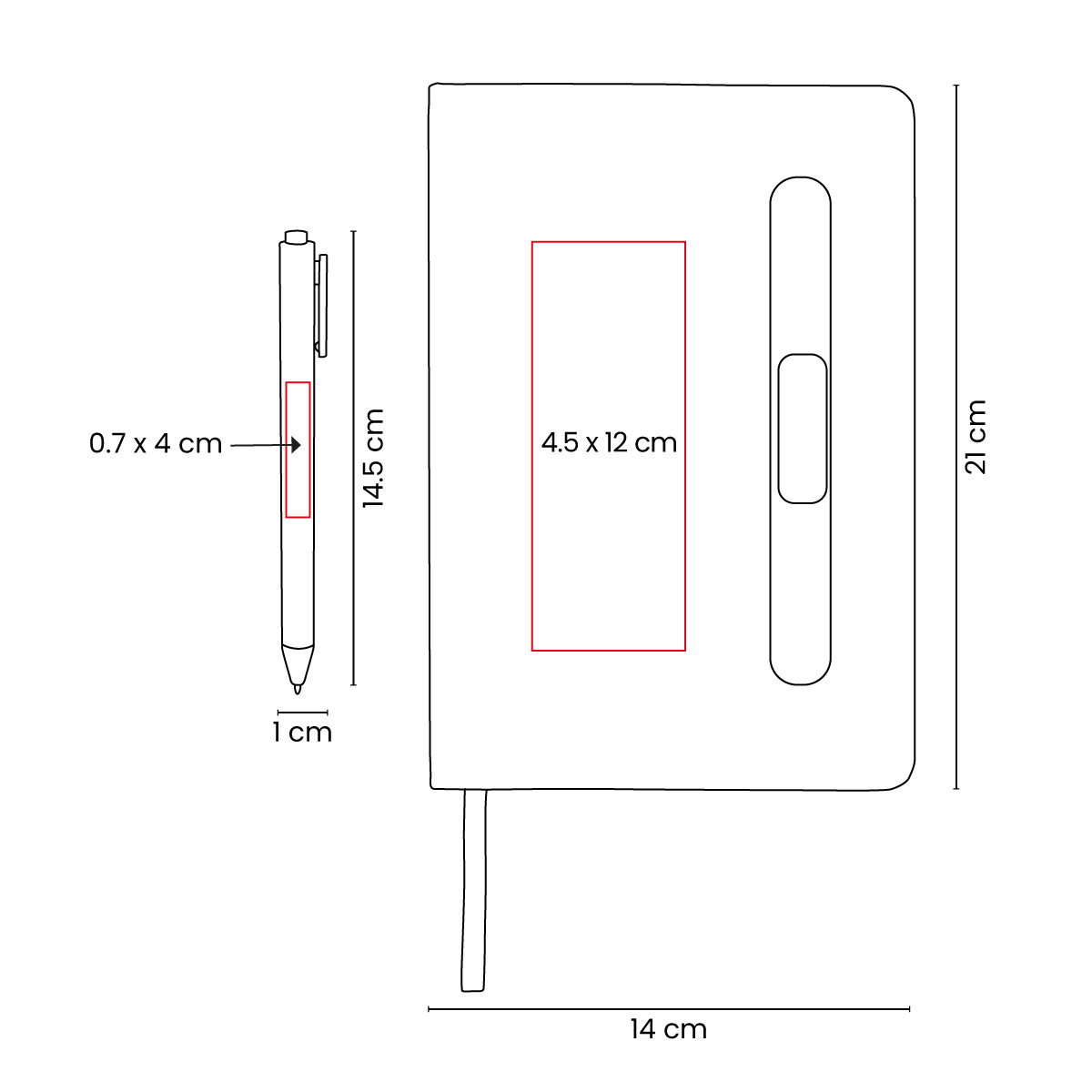 4.5 x 12 cm Libreta / 0.7 x 4 cm Bolígrafo