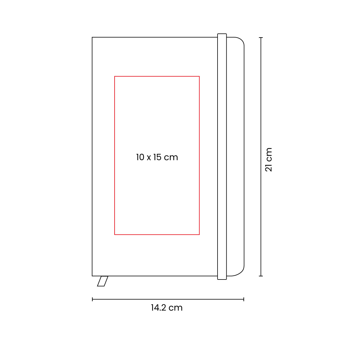 Libreta con 80 hojas de raya. Incluye separador de hojas y elástico para cerrar.