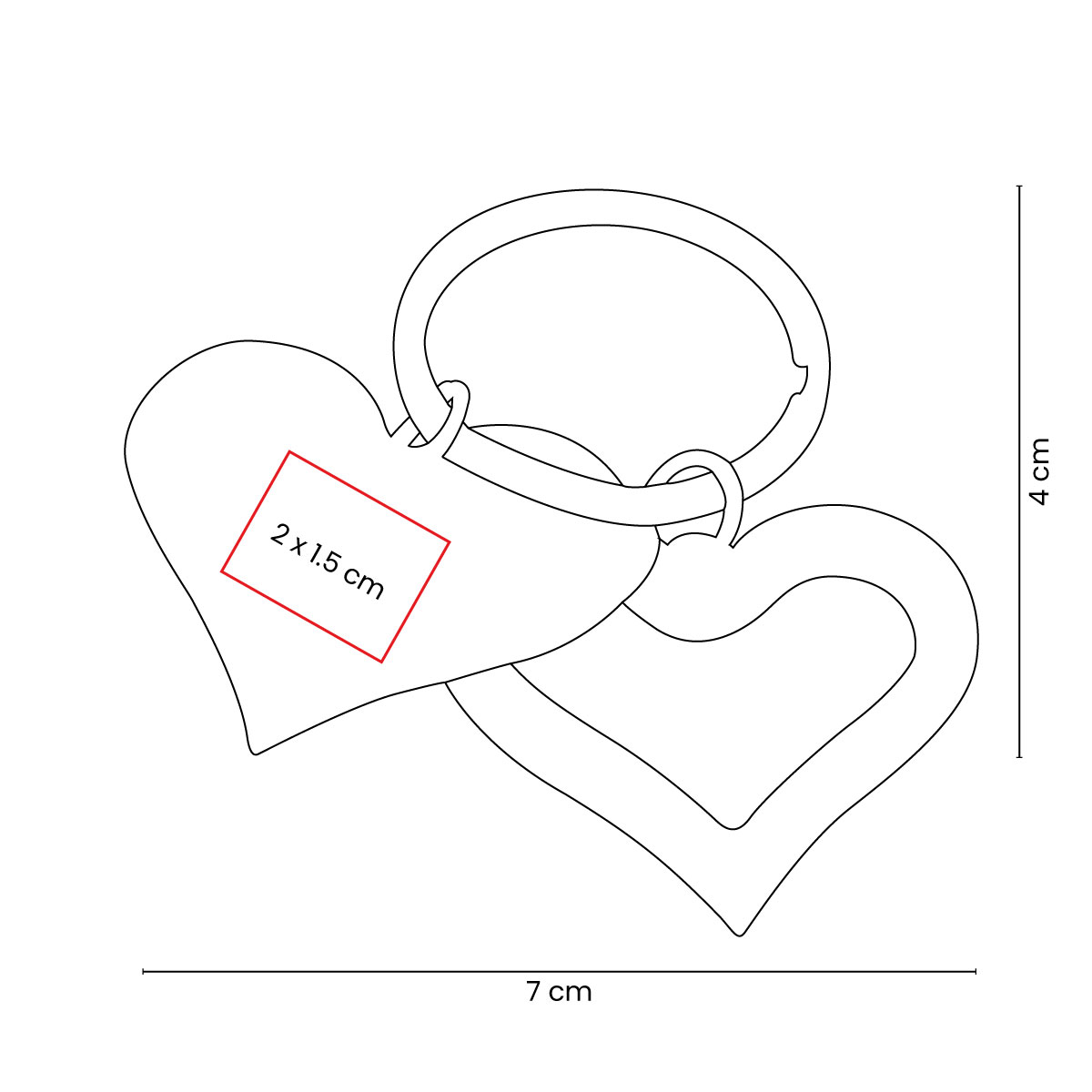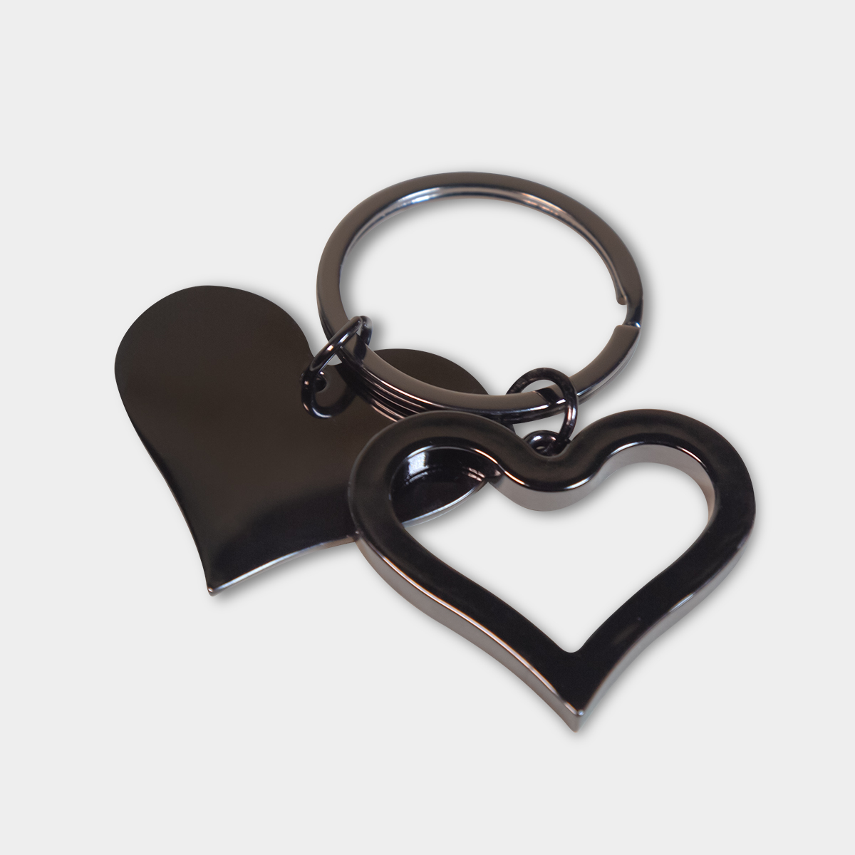 Llavero en forma de corazón con placa para grabado. Incluye caja individual.