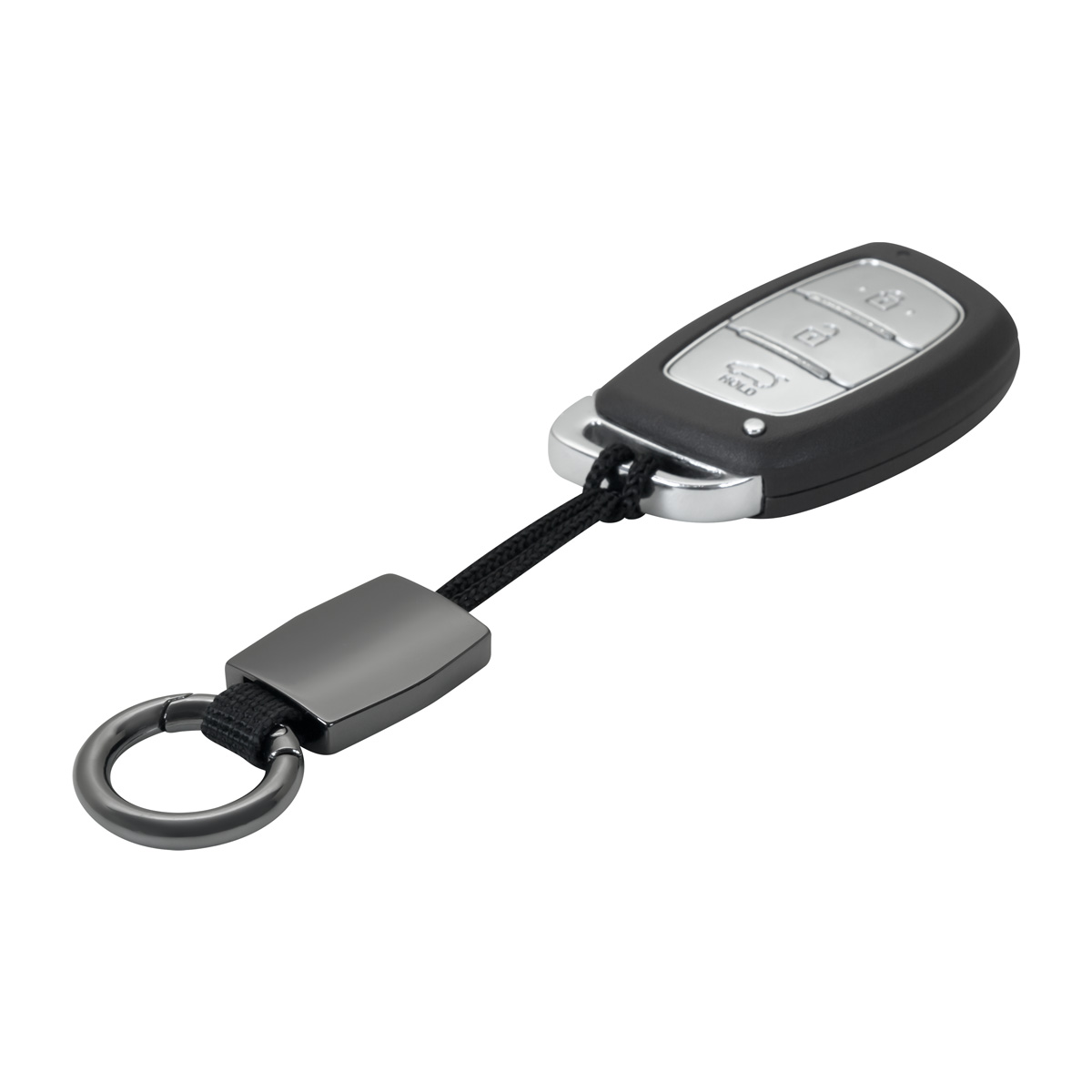 Llavero metálico con argolla tipo gancho. Correa diseñada especialmente para llaves de automóviles con ranura estrecha. Este práctico llavero te permite sujetar tus llaves de manera rápida y sencilla. Incluye caja individual.