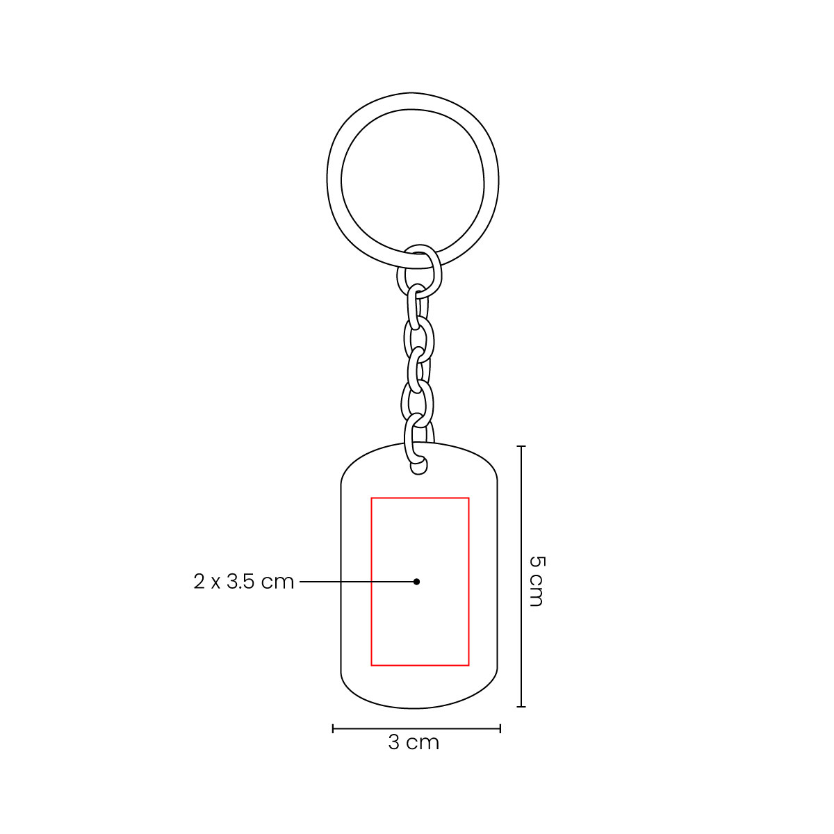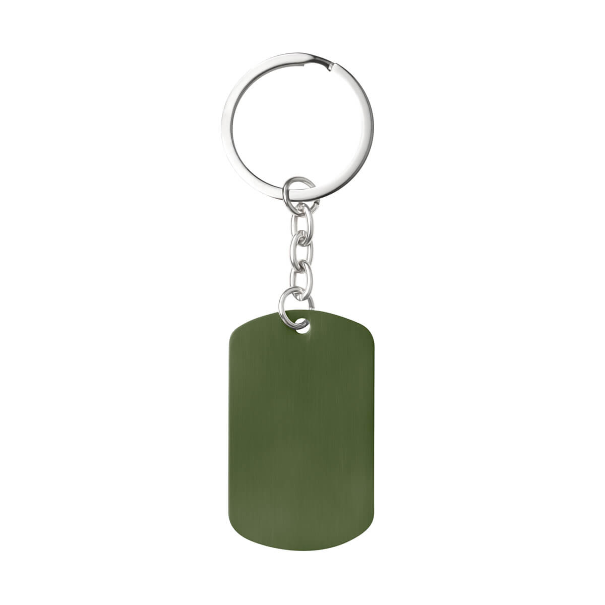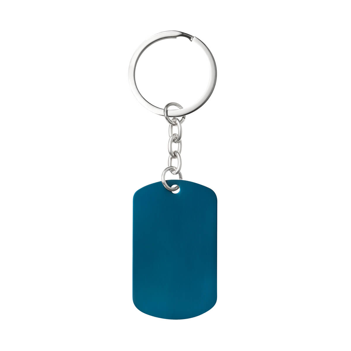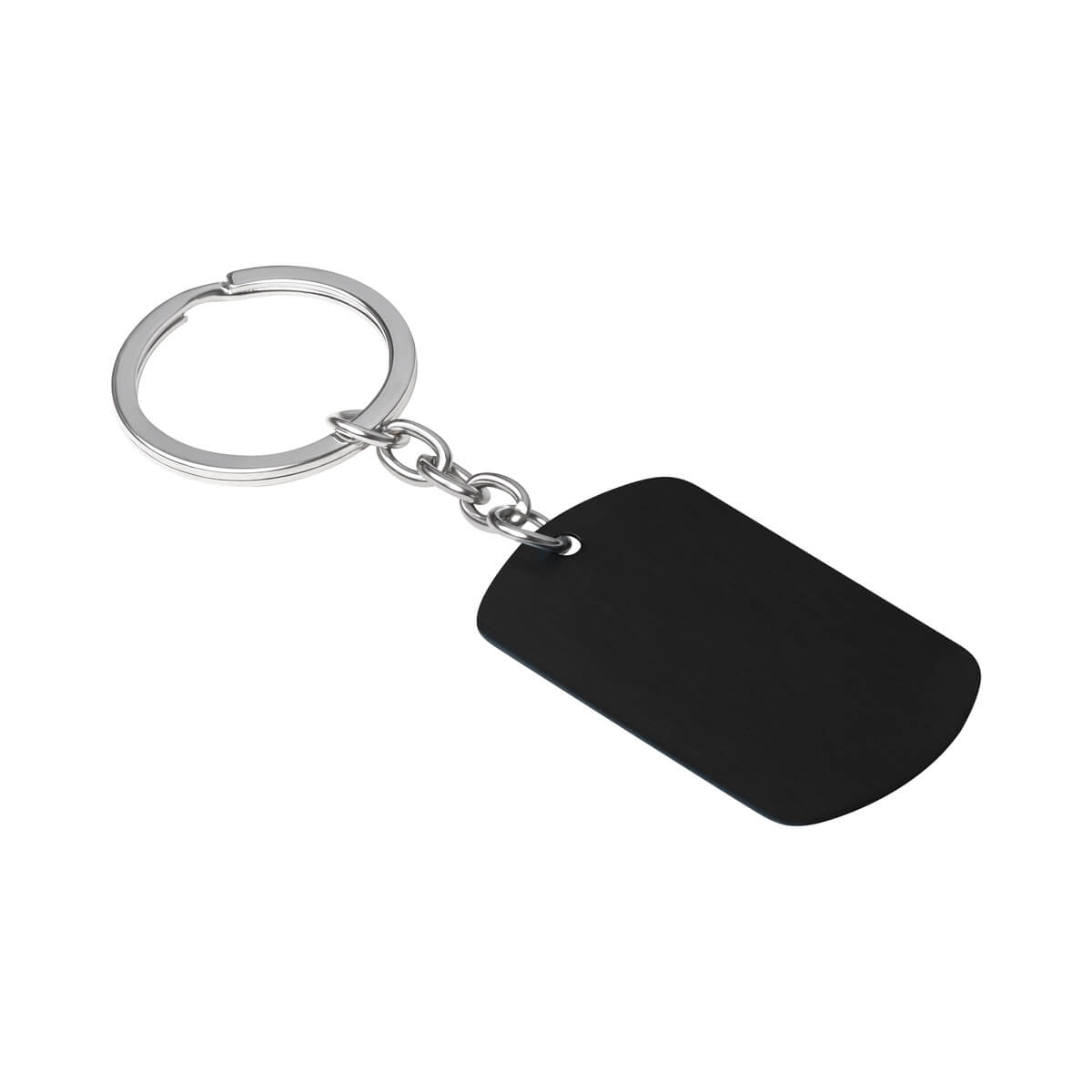 Llavero con placa metálica tipo militar. Diseño ligero, delgado y con acabado satinado.