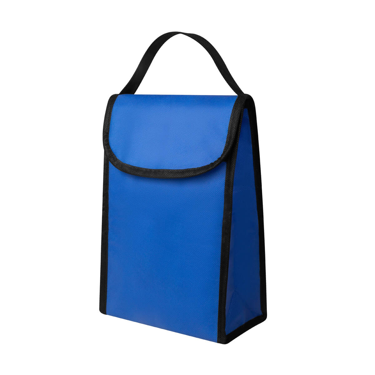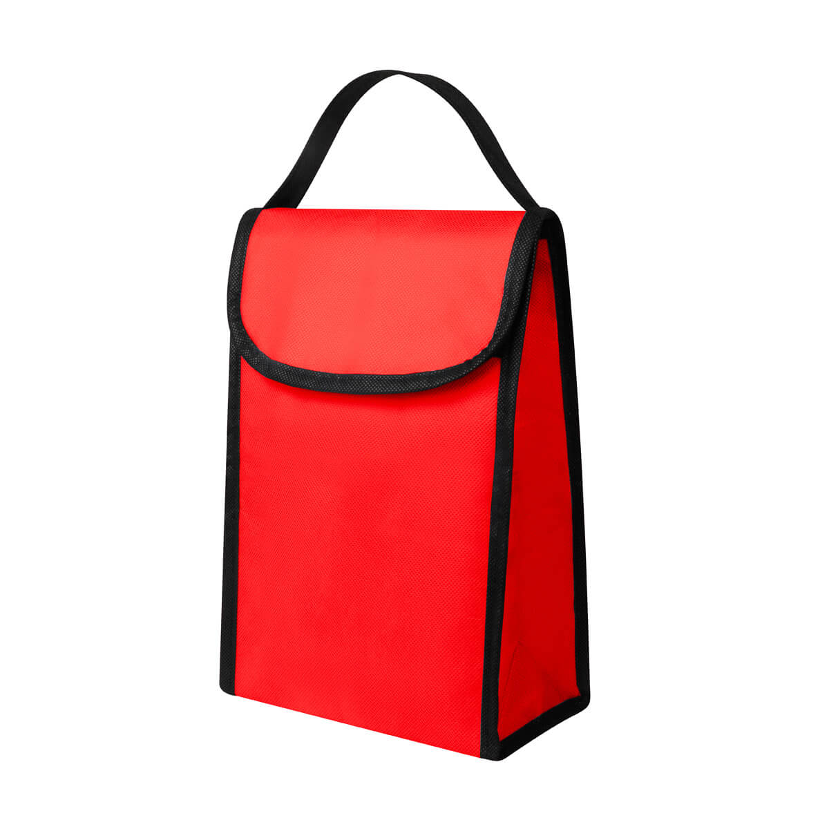 Lonchera con interior metalizado. Bolsa principal con velcro, solapa y asa superior de agarre. Capacidad para 2 latas.