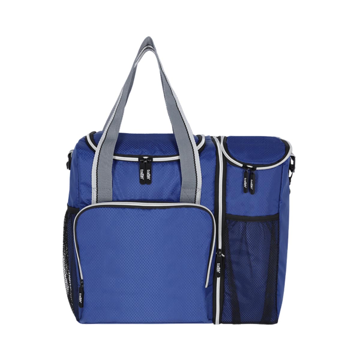 Doble compartimiento con cierre. Cierre intermedio que permite separar en dos piezas y usarlas de forma individual. Interior plastificado. Bolsillo frontal con cierre. Malla frontal y lateral. Correa ajustable. Identificador en la parte trasera. Este producto por ser últimas piezas puede presentar alguna variación, no se aceptan devoluciones.