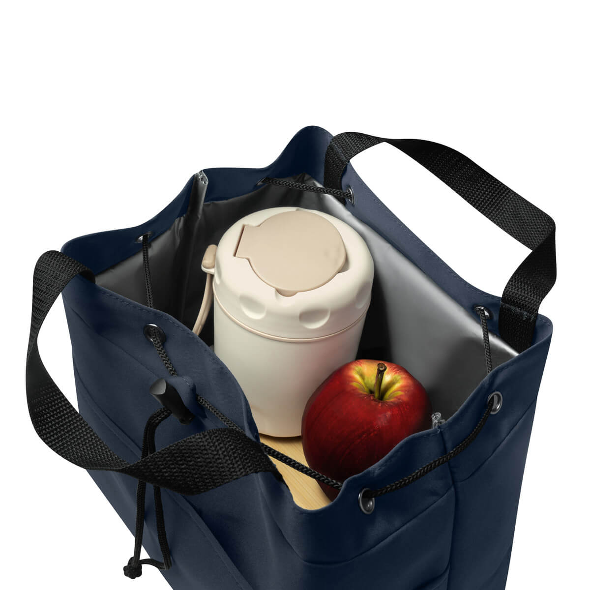Lonchera con interior plastificado. Su compartimento principal cuenta con un cierre tipo jareta, ideal para ajustar a varios tamaños, según cada necesidad. Su bolsillo frontal permite llevar accesorios pequeños y complementar tu lunch. Ideal para la escuela u oficina, lleva tus alimentos con estilo y de forma segura. Capacidad 12 latas.