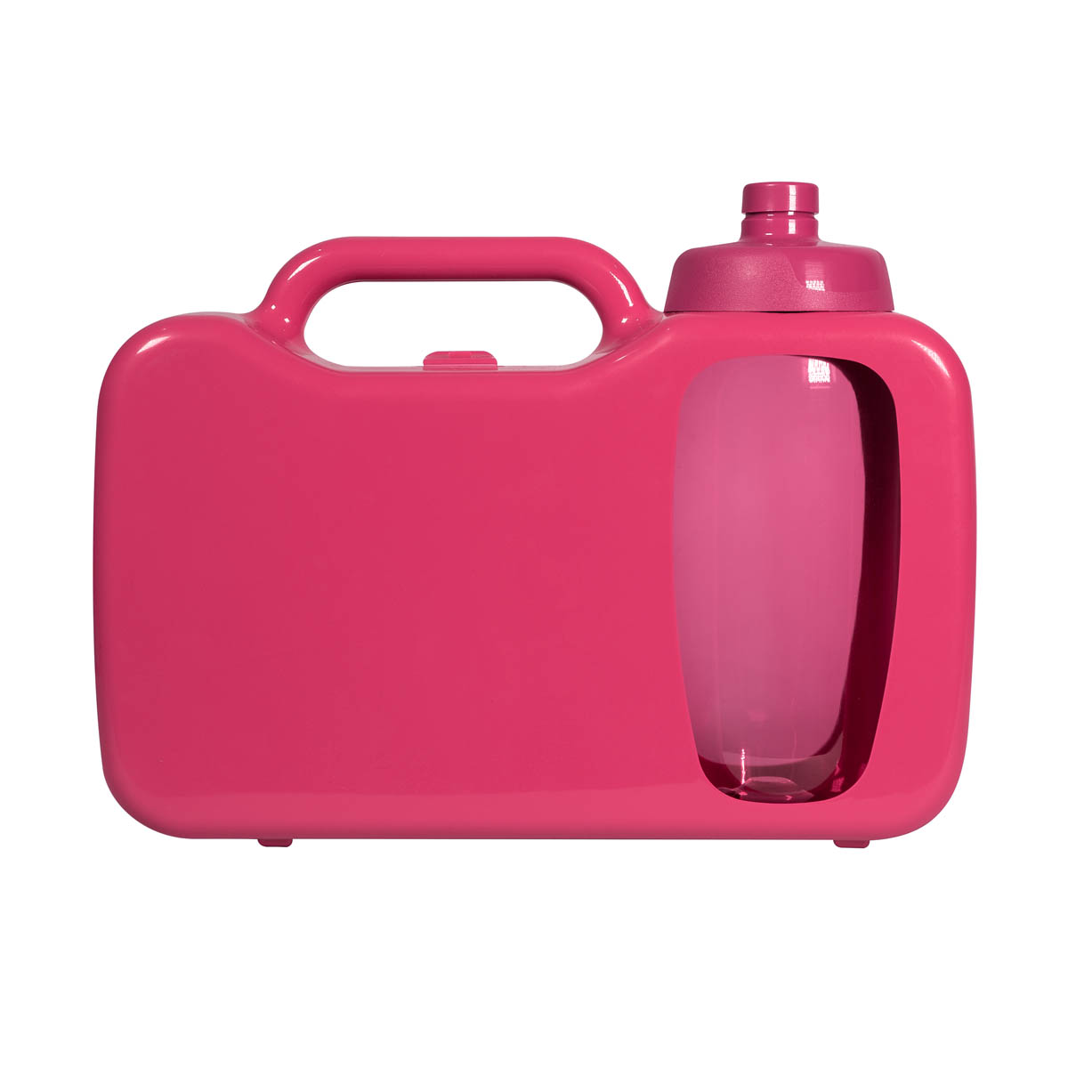 Divertido contenedor para almacenar alimentos. Cuenta con pestañas de cierre a presión para asegurar su contenido. Esta lonchera posee dos áreas distintas: Una dedicada a colocar los alimentos y otra, destinada a un cilindro de plástico ya incluido. Por su parte, el cilindro cuenta con sistema de rosca twist-off, que permite abrir y cerrar la tapa en un giro. Además, este cilindro dispone también de una válvula de seguridad para evitar derrames. No apto para bebidas calientes. No introducir en microondas.
