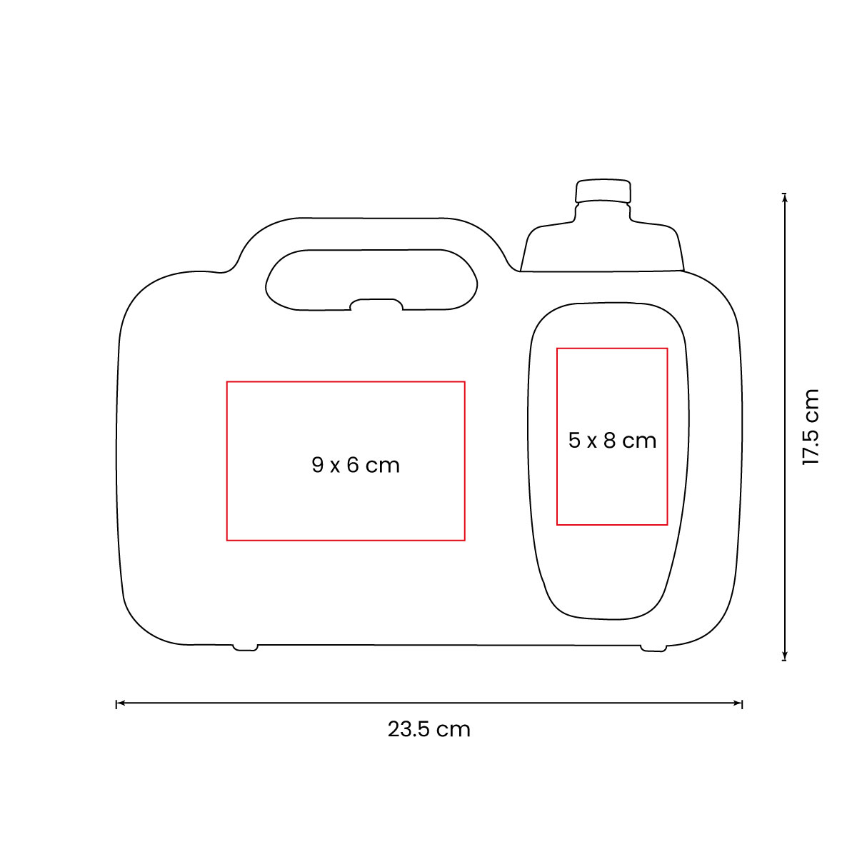 Lonchera: 9 x 6 cm / Cilindro: 5 x 8 cm