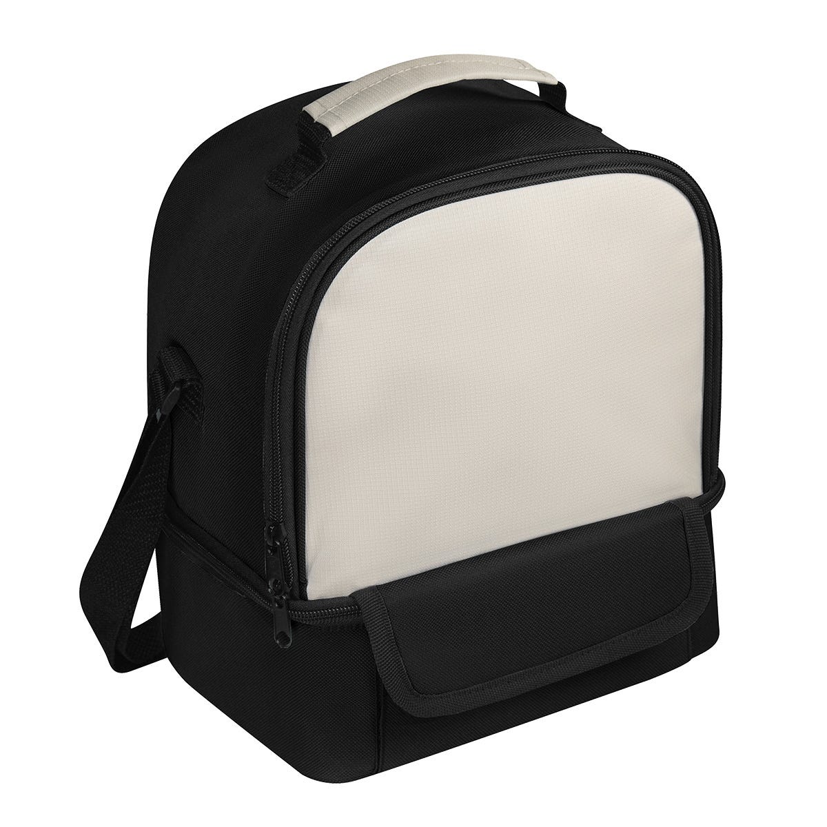 Lonchera con amplio compartimento principal de apertura frontal y práctico compartimento secundario en la parte inferior, perfecto para guardar snacks adicionales. El plastificado interior garantiza higiene y facilidad de limpieza. Incluye una bolsa frontal con velcro especialmente diseñada para guardar cubiertos, evitando que se mezclen con las demás pertenencias. Sus asas de mano y de hombro, ofrecen versatilidad para llevarla contigo. Capacidad para 12 latas.