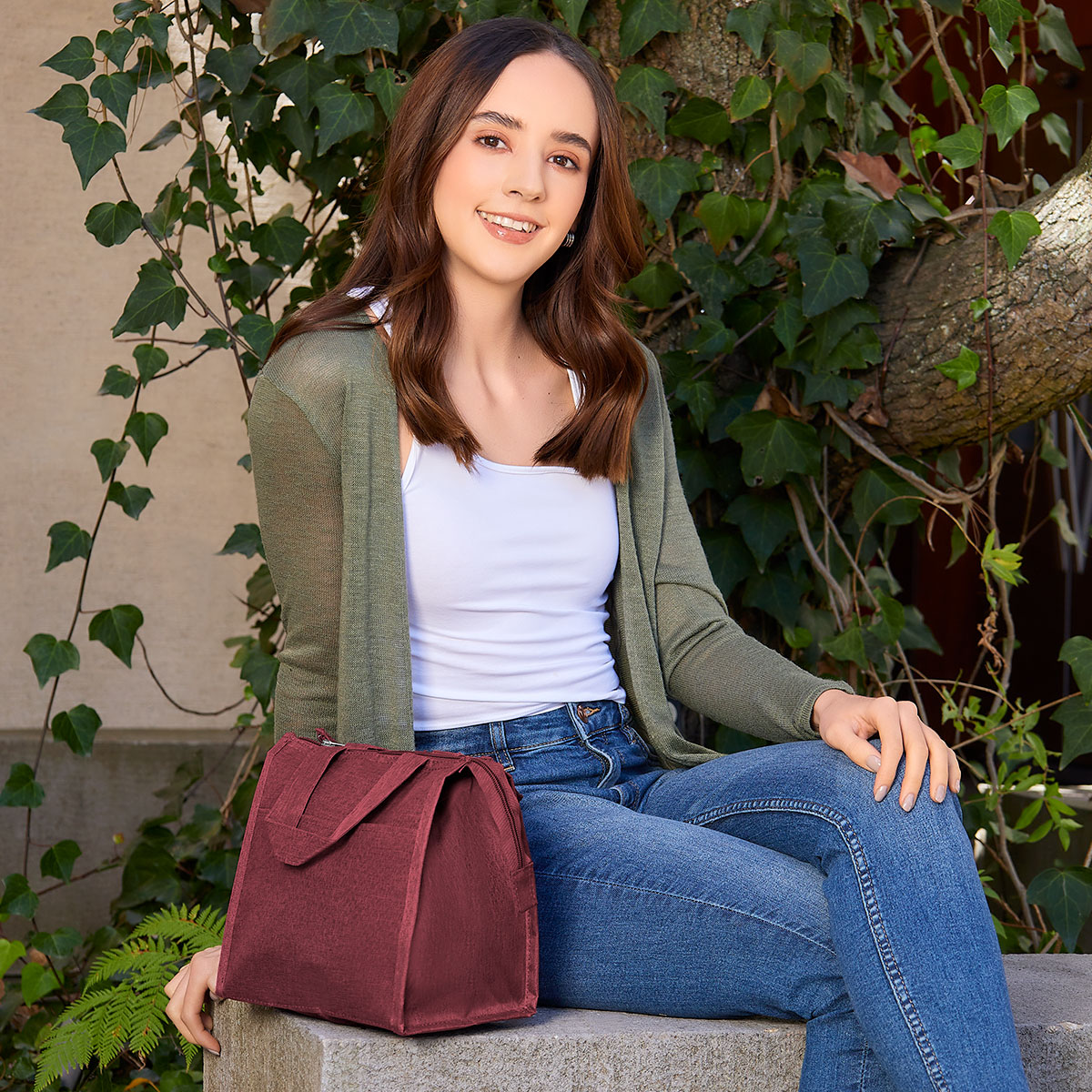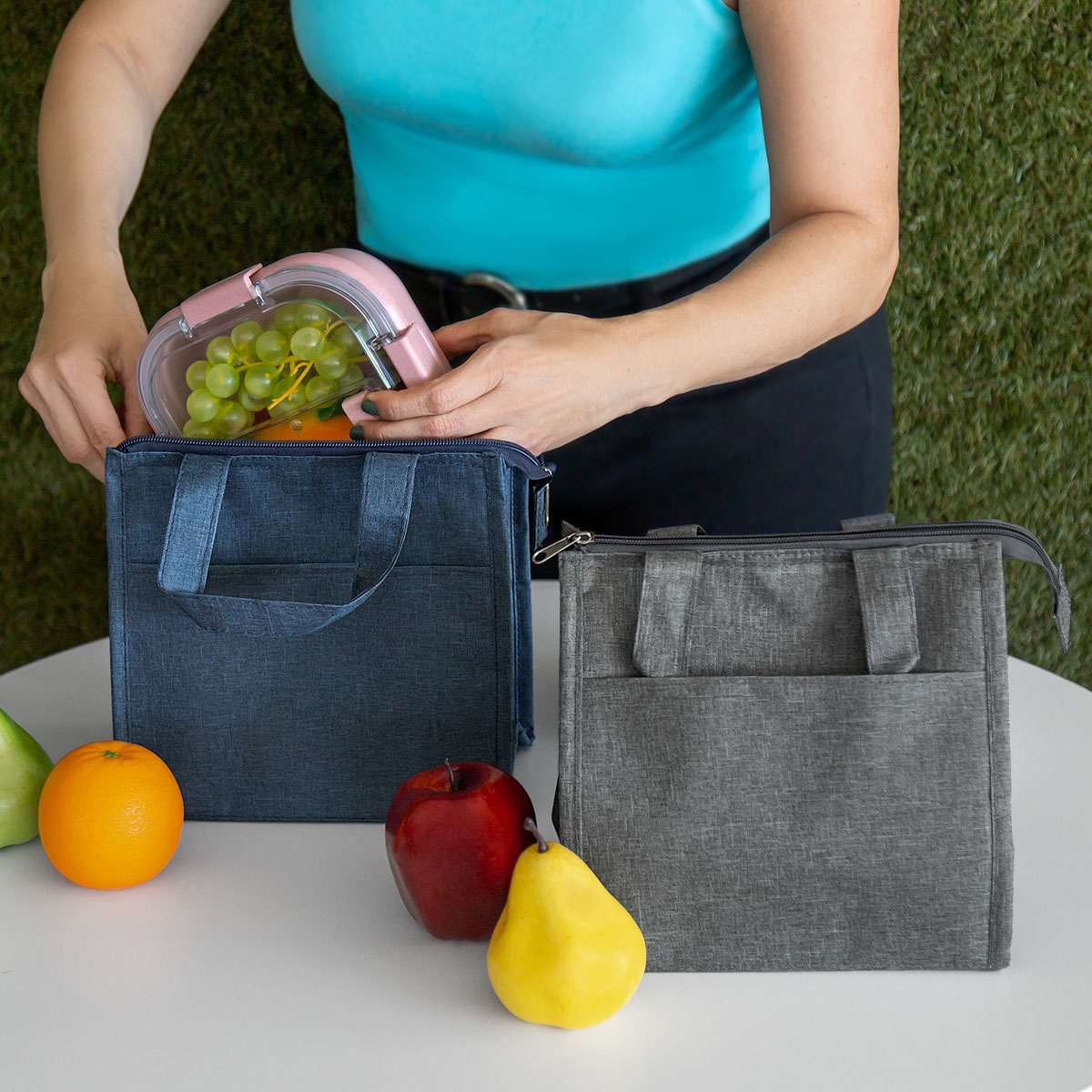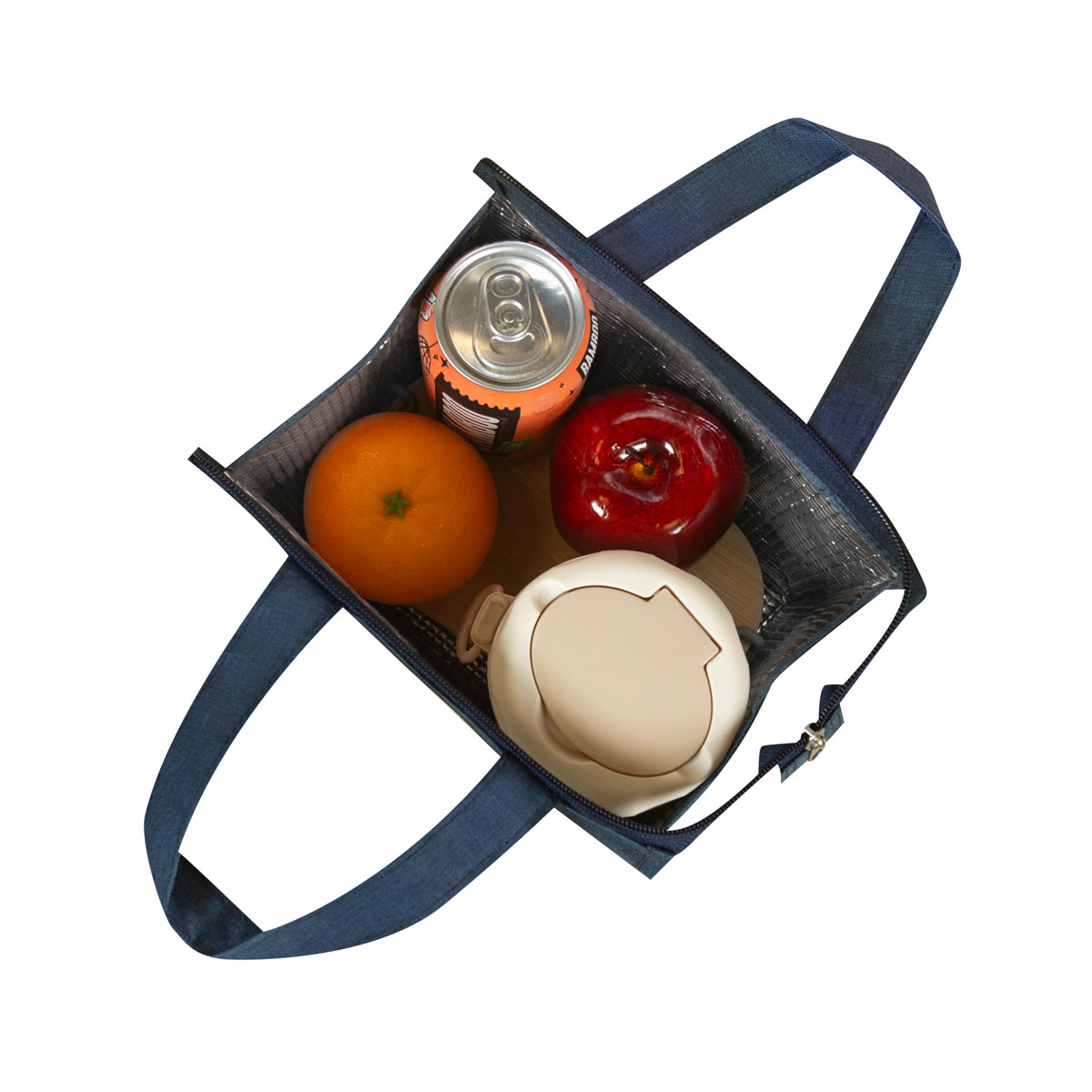 Lonchera de poliéster e interior metalizado, bolsillo frontal para organizar utensilios o pequeños accesorios. Bolsa principal con cierre y asa de mano que facilita su portabilidad. Capacidad para 6 latas.