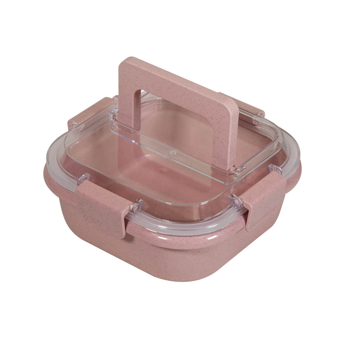 Lonchera de plástico y fibra de trigo que combina versatilidad y sostenibilidad. Su tapa cierra de manera segura con cuatro pestañas para prevenir derrames. El asa plegable facilita su transporte y también ahorra espacio cuando no está en uso. Por su forma cuadrada, esta lonchera es perfecta para almacenar sandwiches o pequeños refrigerios, proporcionando una opción práctica y ecológica para llevar tus comidas a donde quieras. Apto para el uso en microondas y lavavajillas.
