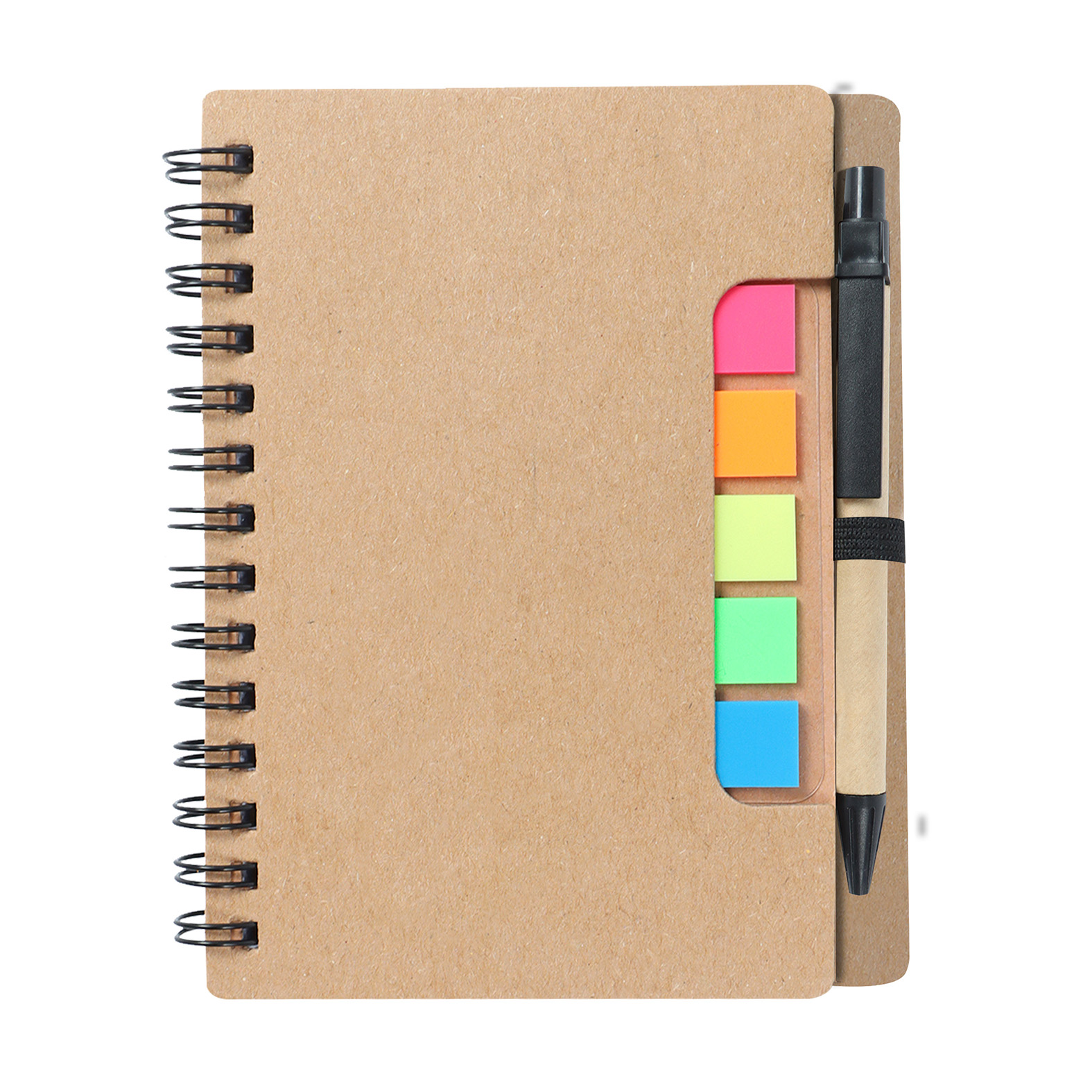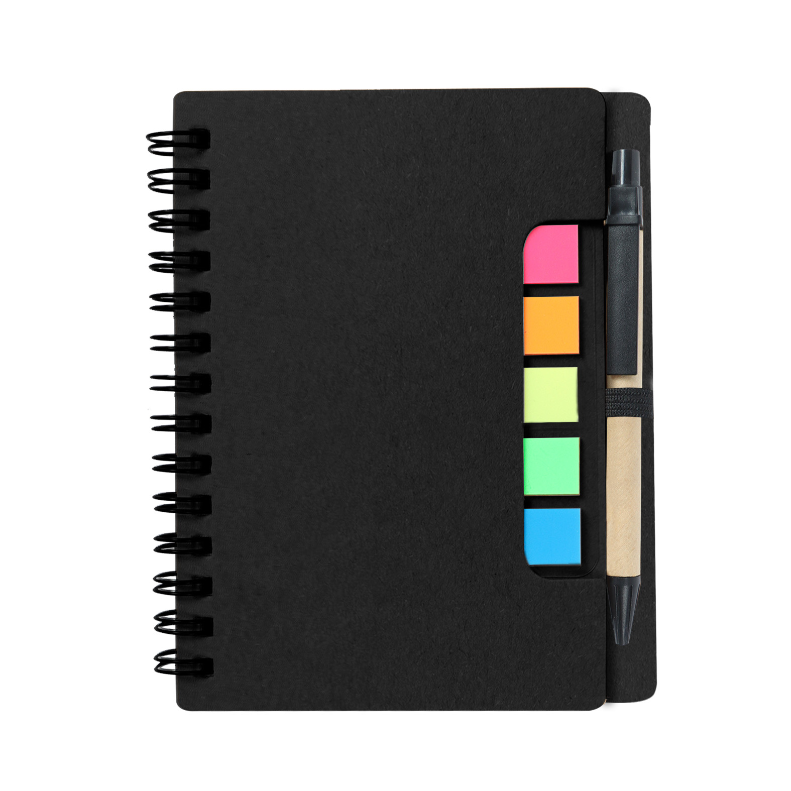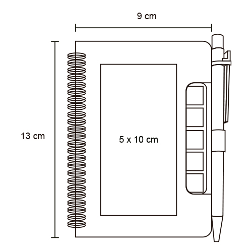 Mini libreta ecológica con espiral, 5 tiras de banderas adheribles, bolígrafo y 70 hojas de raya.