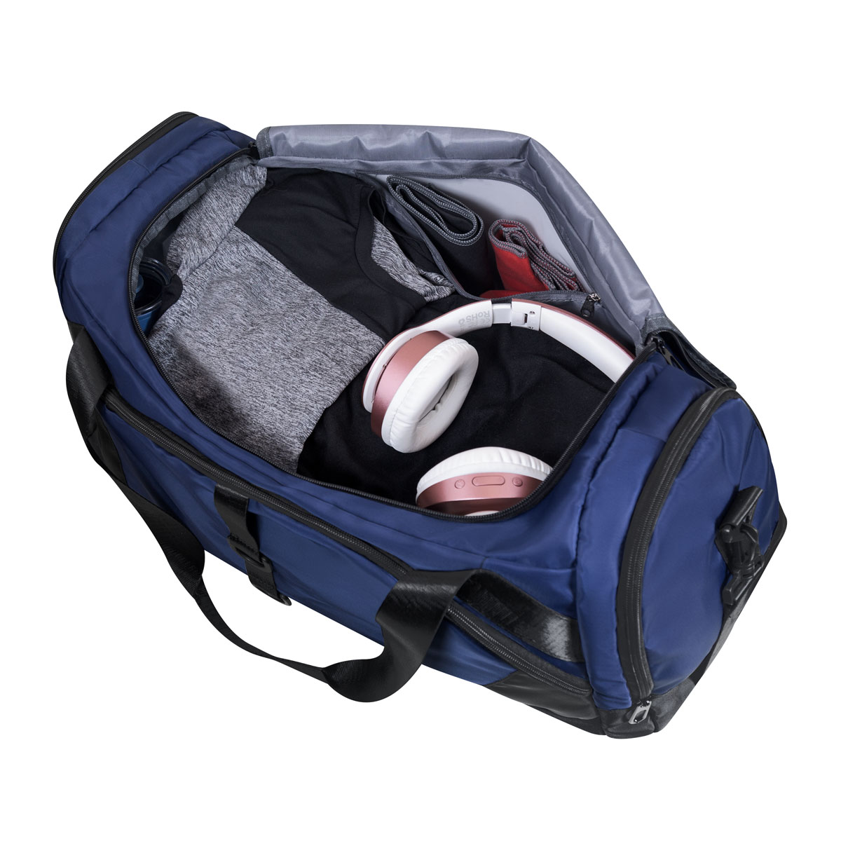 Maleta ideal para tus artículos deportivos. Cuenta con bolsillo frontal con cierre, el cual, permite organizar las pertenencias de forma eficiente. Incluye al centro un par de anillos de plástico ideales para guardar artículos pequeños esenciales. Su bolsillo lateral ofrece un acceso rápido a sus artículos. Además, cuenta con una práctica zapatera que permite mantener el calzado separado y protegido. Las asas superiores se ajustan a la altura deseada. El asa de mano incluye un protector con velcro, de esta manera podrá llevarla cómodamente. El interior de la maleta incluye un practico bolsillo impermeable, en el que podrá resguardar prendas húmedas, protegiendo el resto de sus artículos.
