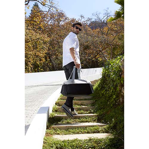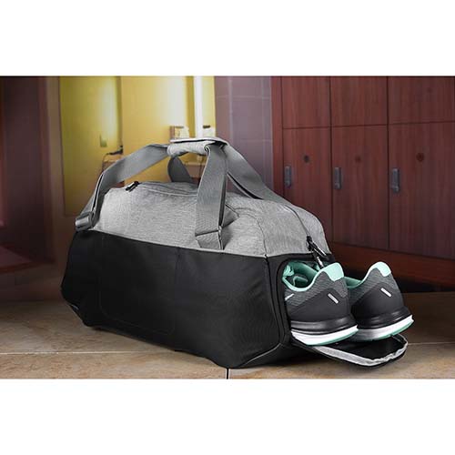 Bolsa principal con cierre, una bolsa interna con velcro y otra con cierre, una bolsa frontal con cierre y dos compartimentos internos, compartimento lateral para zapatos . Asas de mano ajustables.