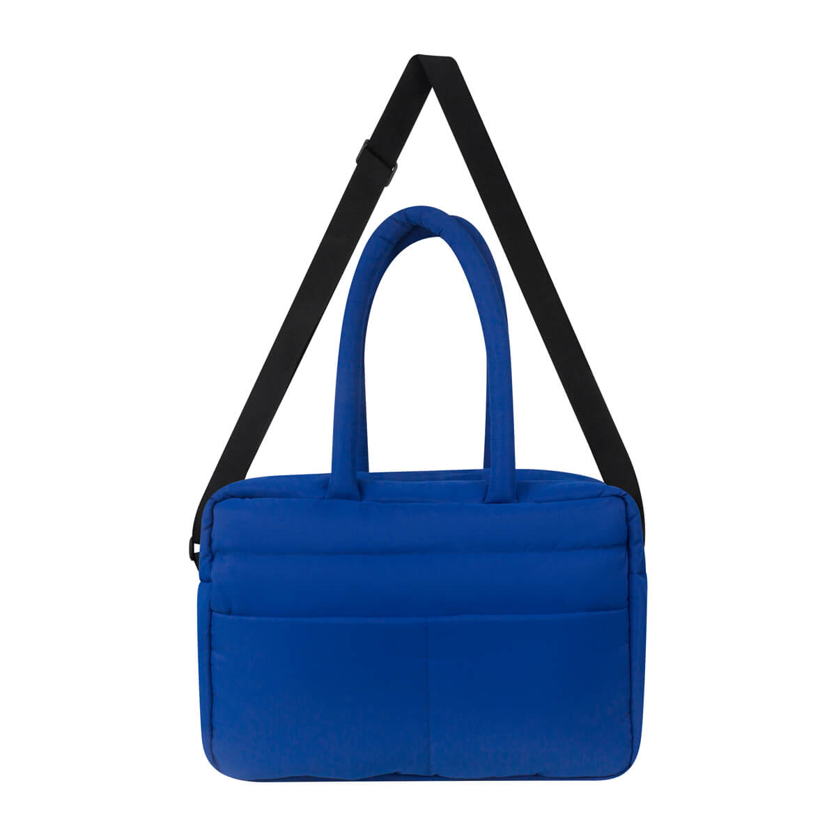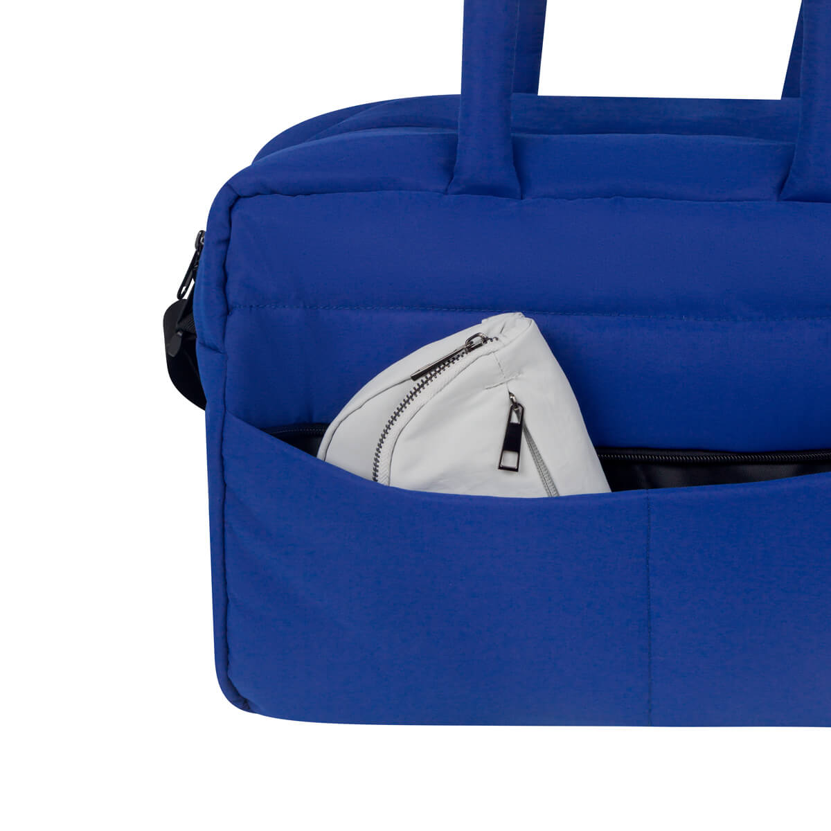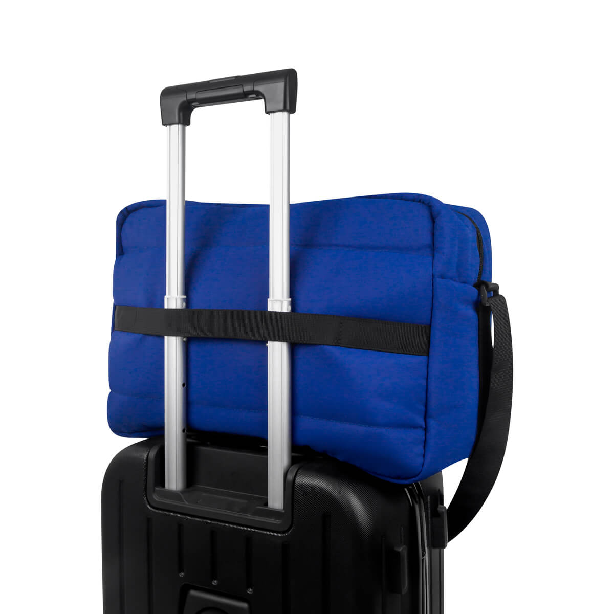 Maleta con exterior acolchado, suave al tacto, ideal para llevar tus pertenencias con comodidad. Cuenta con asas de mano del mismo material, asa de poliéster ajustable para hombro y banda para colocar en trolley. Incluye un bolsillo frontal con cierre, compartimento principal amplio con cierre y organizadores internos para mantener el contenido en completo orden.