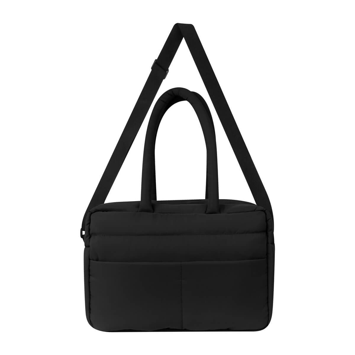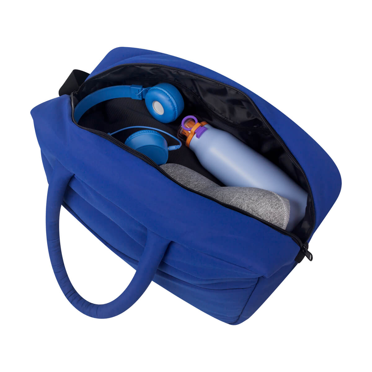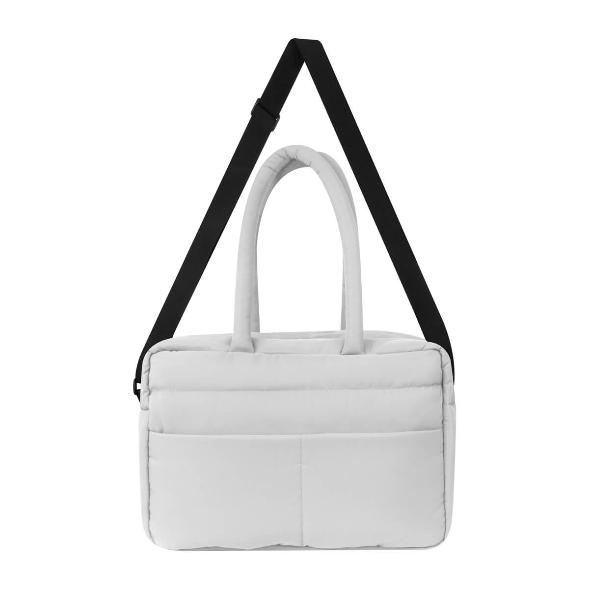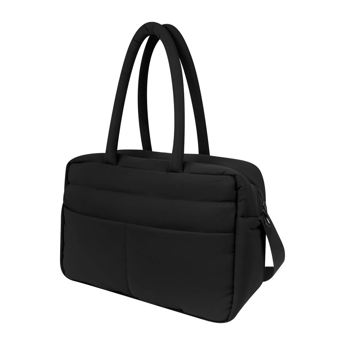 Maleta con exterior acolchado, suave al tacto, ideal para llevar tus pertenencias con comodidad. Cuenta con asas de mano del mismo material, asa de poliéster ajustable para hombro y banda para colocar en trolley. Incluye un bolsillo frontal con cierre, compartimento principal amplio con cierre y organizadores internos para mantener el contenido en completo orden.