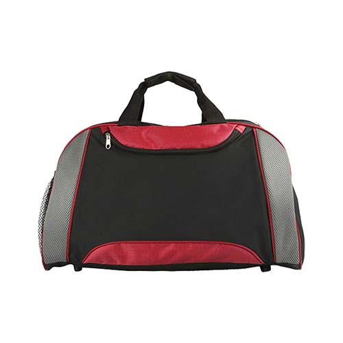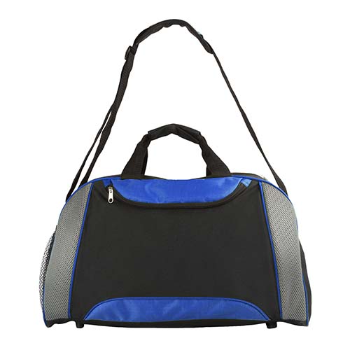 Bolsa principal con cierre, zapatera posterior con cierre, bolsa lateral de red, asas y correa para hombro ajustable.
