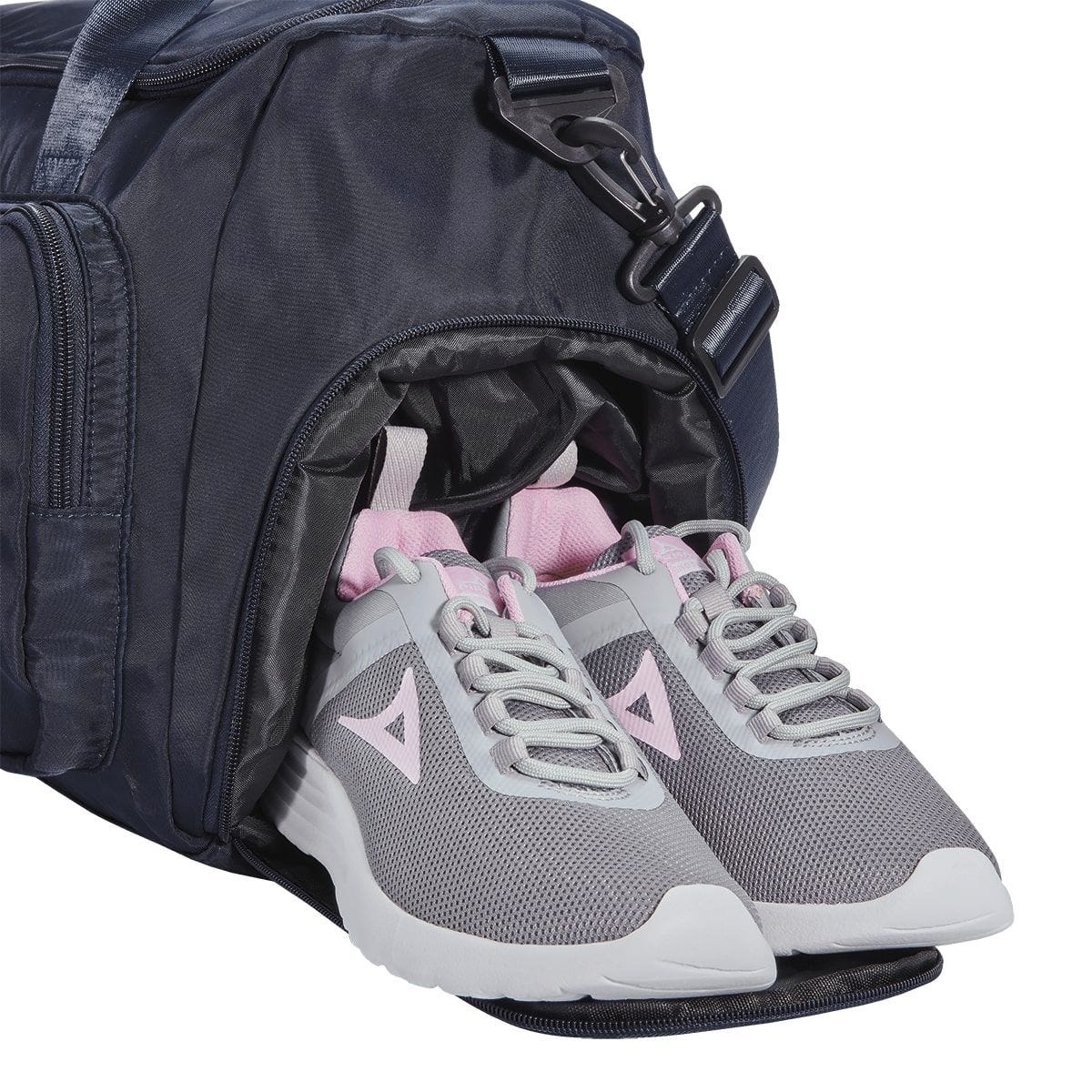 Maleta deportiva con bolsa principal con cierre y bolsa interna resistente al agua. Incluye compartimento lateral con cierre para guardar su calzado. Bolsa con cierre al frente, bolsillo con cerrado de velcro e identificador de silicón para su fácil localización. Para mayor comodidad cuenta con 2 asas de transporte superior, correa ajustable y removible para hombro y aditamento especial trasero para colocar en trolley.