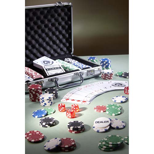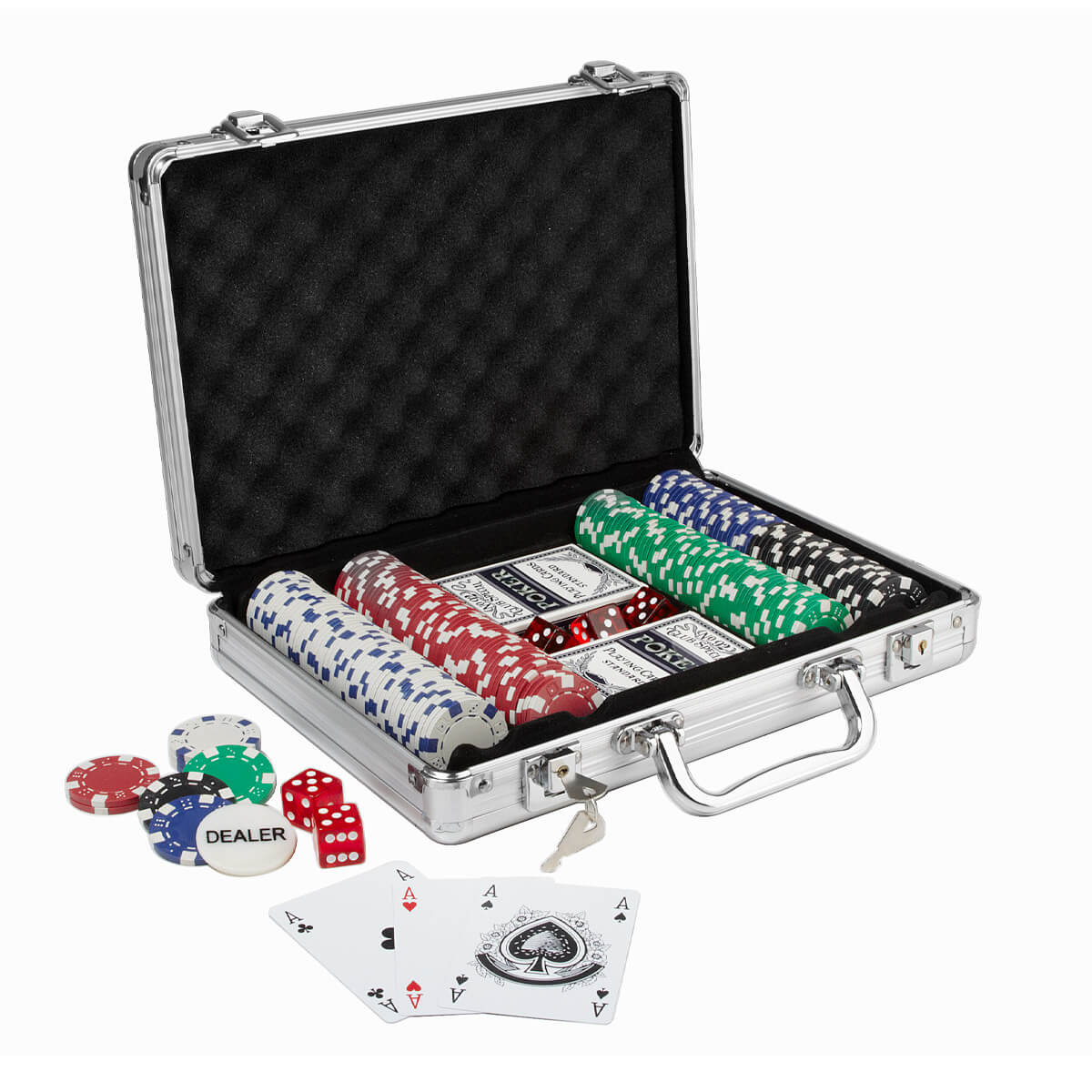 Incluye 200 fichas, 2 barajas plastificadas, 5 dados, 1 ficha de dealer y llaves.