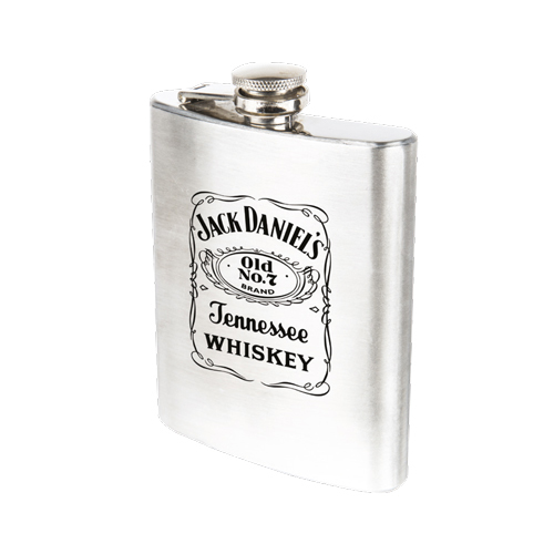 Licorera de bolsillo de acero inoxidable con tapa enroscable.
