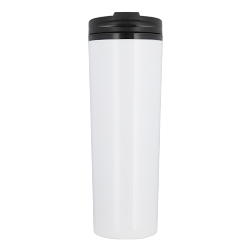 Termo de plástico con doble pared, tapa enroscable y válvula de seguridad.