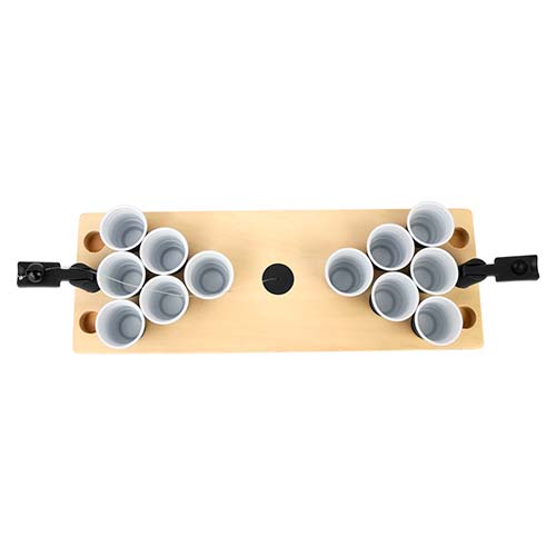 Juego mini beerpong. Incluye 12 vasos de plástico rígido y sistema de catapultas con pelota. La madera es un producto natural el cual puede presentar variaciones en tonalidades y vetas.