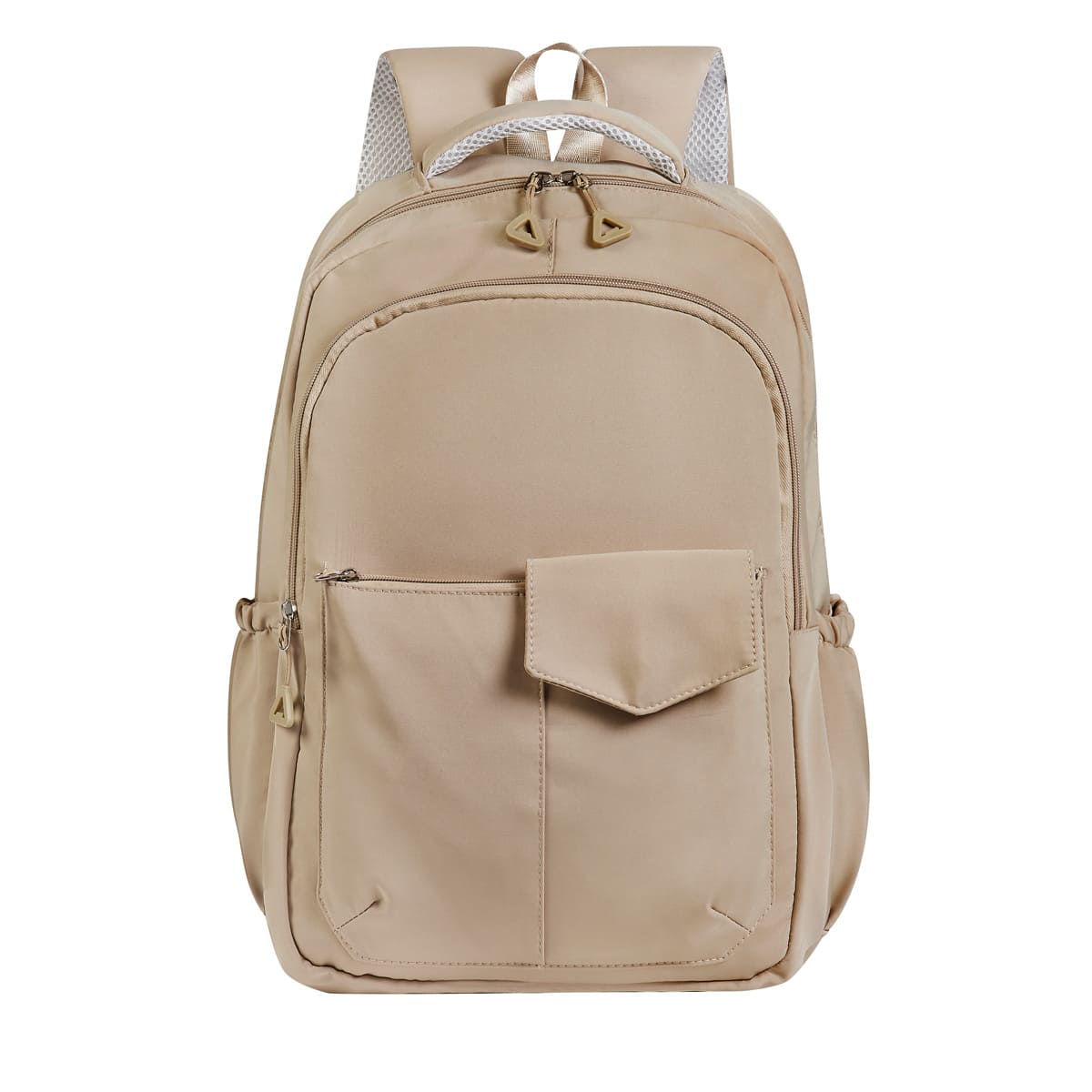Mochila estilo casual. Su bolsa principal cuenta con un compartimento especial para laptop de hasta 15″, además incluye bolsillos organizadores para mantener tus objetos personales ordenados y al alcance de tu mano. Al frente tiene dos bolsos con cierre y una solapa decorativa con broche magnético que le añade un toque de elegancia y practicidad. También cuenta con dos bolsillos laterales para llevar botellas u otros artículos esenciales. Su asa superior te permite llevarla cómodamente; mientras que las asas para hombro acolchadas ofrecen un soporte ergonómico.