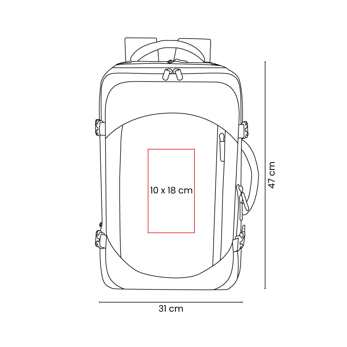 Mochila ideal para viajes, con amplios espacios de almacenamiento. Cuenta con un compartimento acolchado para laptop de hasta 16″. Capacidad desplegable para adaptarse a tus necesidades, utiliza cierre para expandir y broches laterales para ajustar a la medida que más te convenga. El compartimento central, incluye un broche cruzado, tipo maleta, para mantener ropa o pertenencias fijas. Dispone de una agarradera superior y una lateral, que permiten trasladarla de manera versátil. Sus asas acolchadas, garantizan comodidad durante todo el día, además, incluye una banda en la parte posterior que facilita su transporte en trolley.