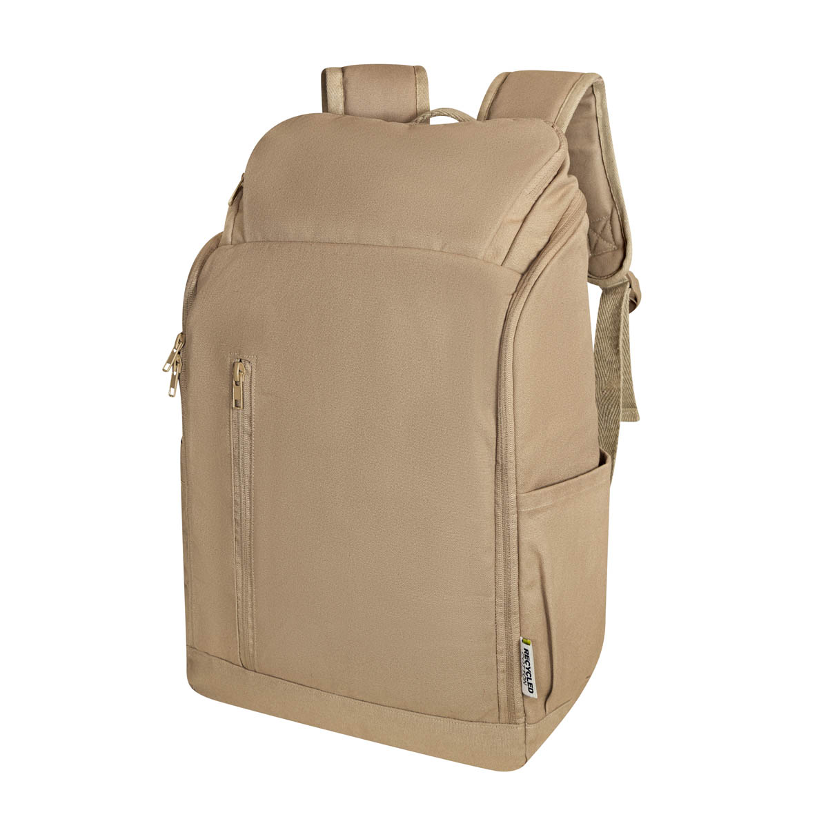 Mochila ecológica de algodón reciclado, el balance perfecto entre sustentabilidad y funcionalidad, lo que la hace tu compañera perfecta para tu día a día. Equipada con un compartimento acolchado para laptop hasta 15″ en el bolsillo principal, un bolsillo frontal con cierre, un práctico bolsillo superior para objetos pequeños y dos bolsillos laterales para una organización impecable. Además, su banda en la parte trasera te permite adaptarla fácilmente a tu trolley.