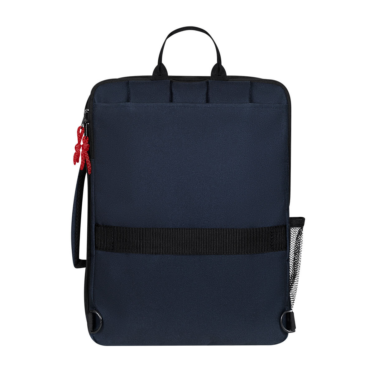 Mochila tipo portafolio. Su bolsillo principal se puede expandir por medio de un cierre, lo que le permite adaptarse a diferentes medidas y necesidades. Cuenta con un bolsillo adicional para laptop. En la parte frontal agrega un bolsillo vertical con cierre y otro horizontal para organizar de mejor manera tus objetos esenciales. En la parte de atrás cuenta con un compartimento que te permite guardar las asas para hombro y gracias a su asa acojinada puedes utilizarlo como portafolio. Incluye banda para colocar en trolley. Soporta laptop de hasta 13″.