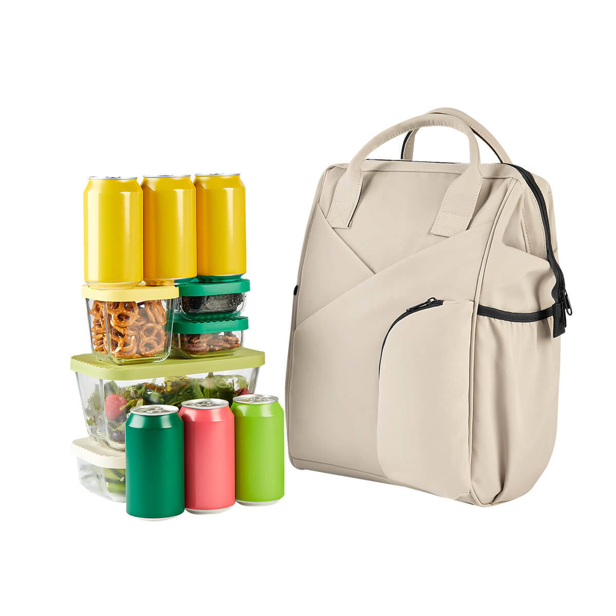 Lonchera práctica y versátil de gran capacidad. Su interior plastificado, facilita su limpieza y conserva mejor tus alimentos. El compartimiento principal, cuenta con un marco metálico, lo que brinda mayor comodidad al introducir o extraer lo que necesites. El diseño cruzado con bolsillo oculto en la parte frontal, le brindan un toque moderno y funcional, mientras que el compartimento frontal con cierre, es perfecto para almacenar accesorios pequeños. Sus dos bolsillos laterales, son ideales para termos o botellas. Gracias a sus asas ajustables, también puedes llevarla cómodamente como mochila, convirtiéndola en la compañera ideal para tu día a día. Capacidad 20 latas .