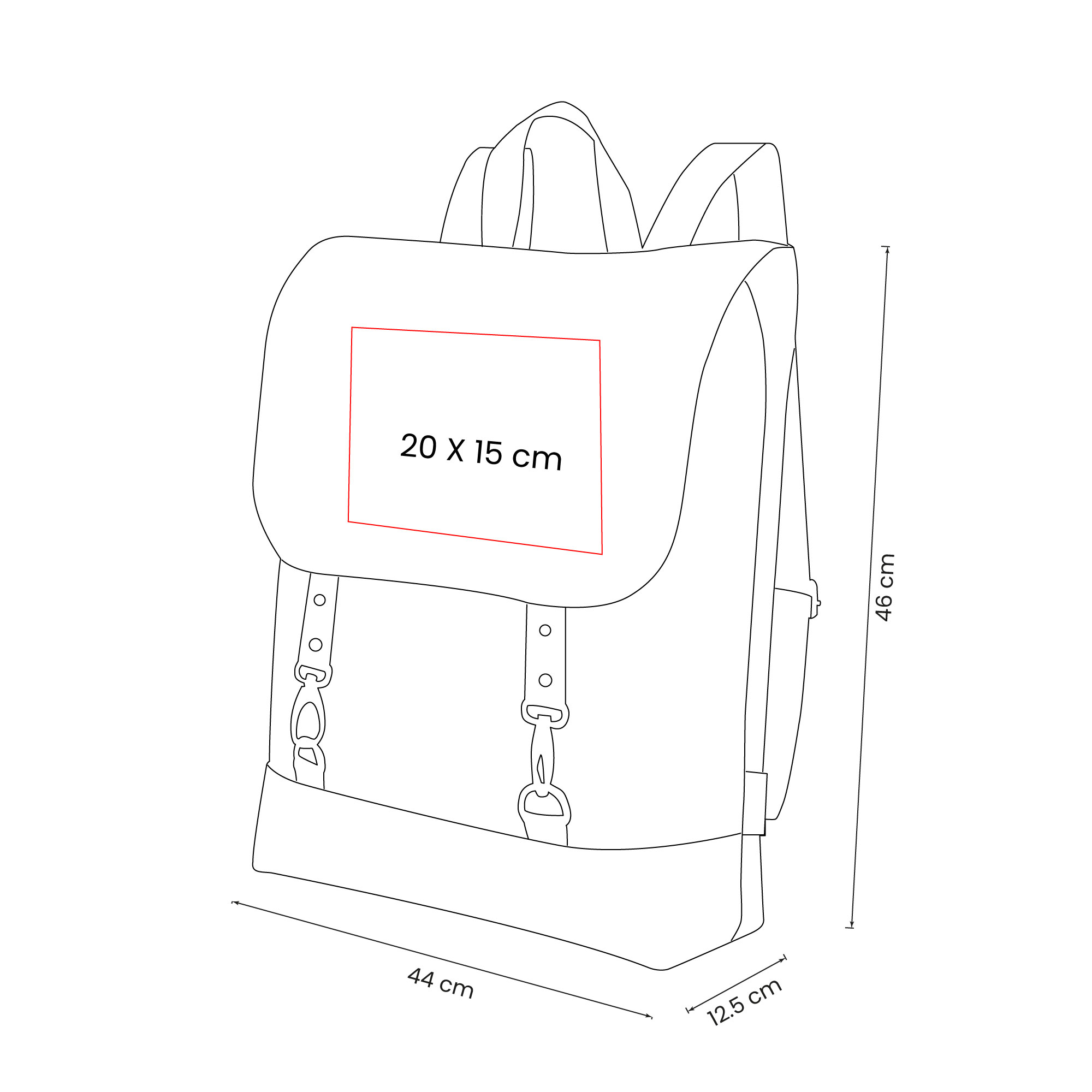 Mochila ecológica de algodón reciclado. Compartimento principal con cerrado de solapa y 2 broches metálicos. Asa superior y asas para hombro ajustables.