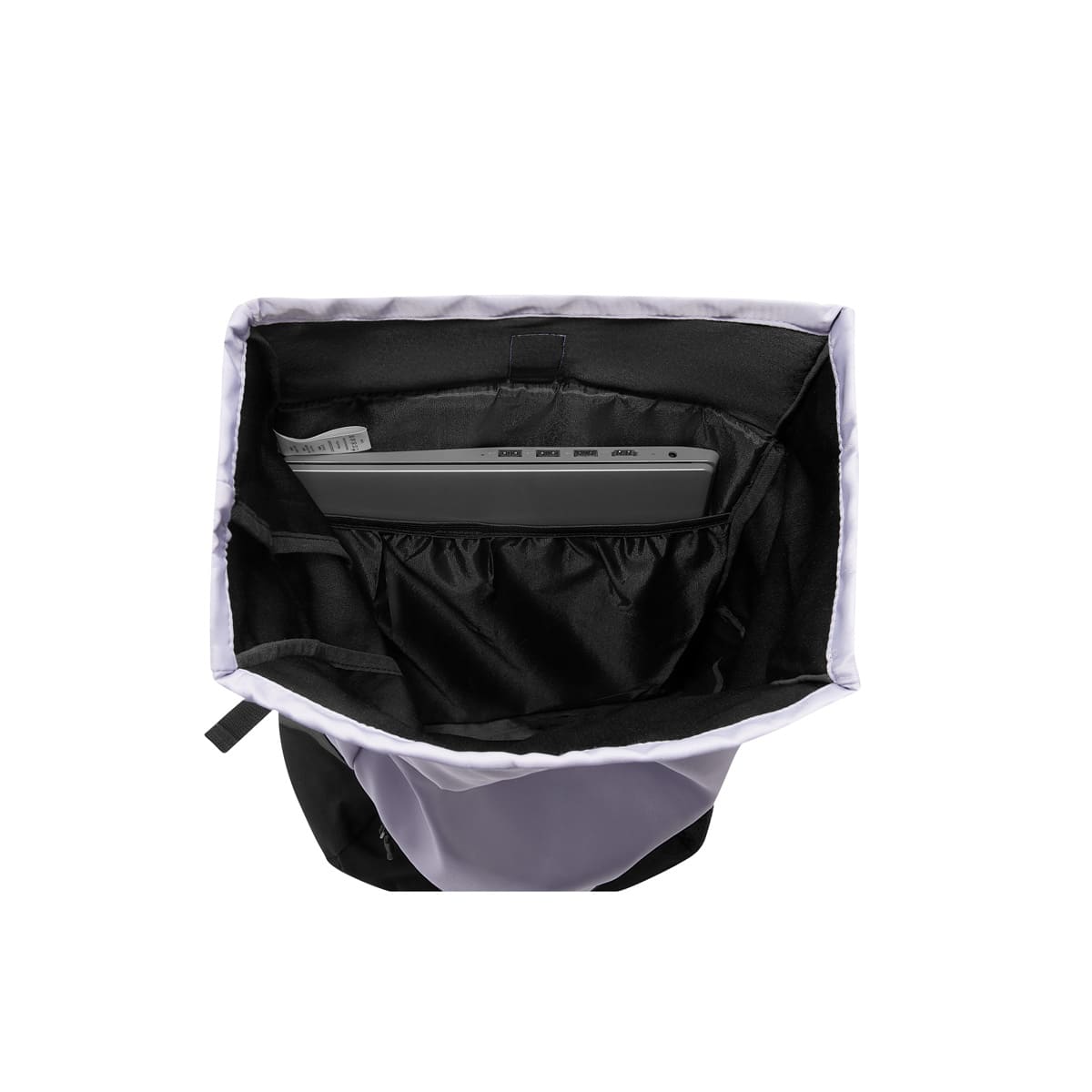 Mochila bitono con bolsa principal con cerrado de broche. Interior con compartimento para laptop de 16″. Incluye bolsillo frontal con cierre y bolsillo lateral de malla.