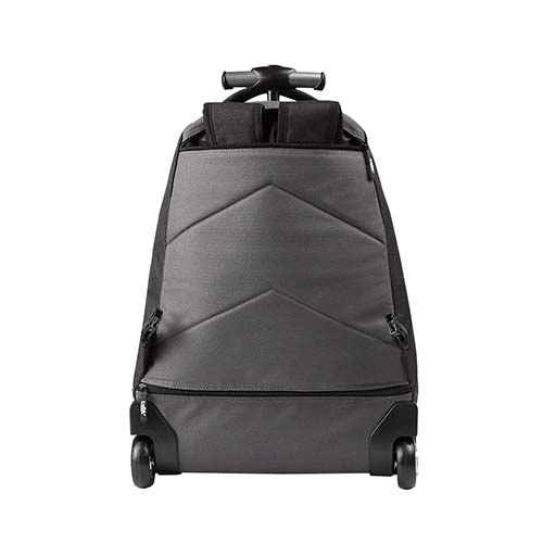 2 Bolsas frontales. Porta llaves frontal. Bolsa principal con espacio para laptop de 14″. Parte trasera con cierre para esconder tirantes removibles. Funcionamaiento trolley.